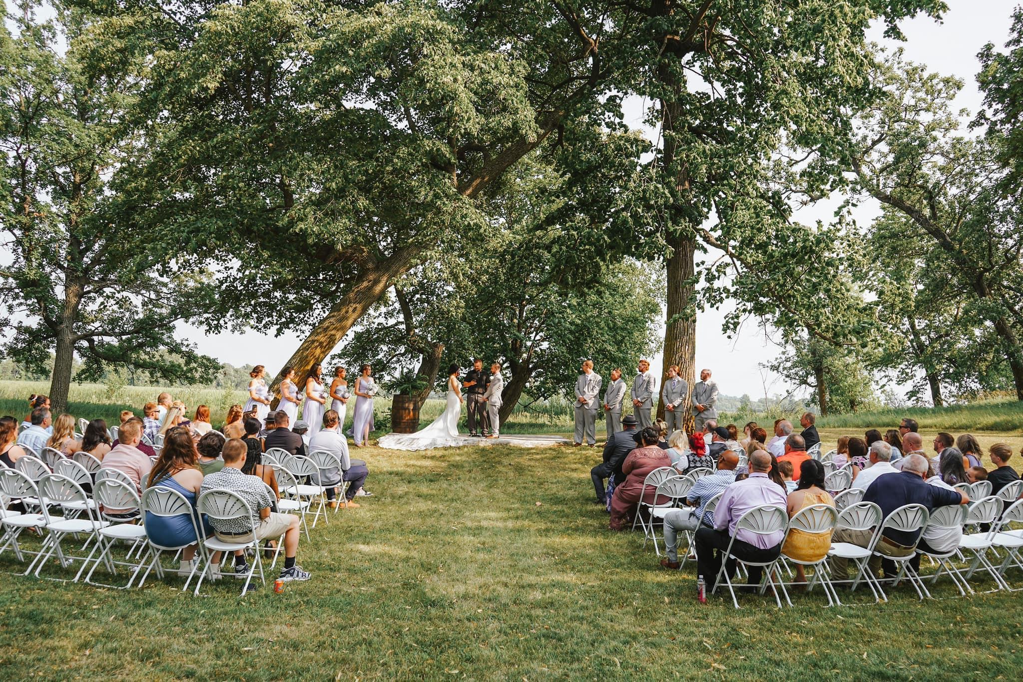Completely remote and private. Ceremony set up and tear down, using white chairs seen in photos. Ceremony stage included, access to our Something Borrowed Collection for decorating. See more at FB and IG @adlerranch or our website gallery https://www.adlerranch.com/gallery-1. We can also be reached directly at info@adlerranch.com or 320-760-8314.