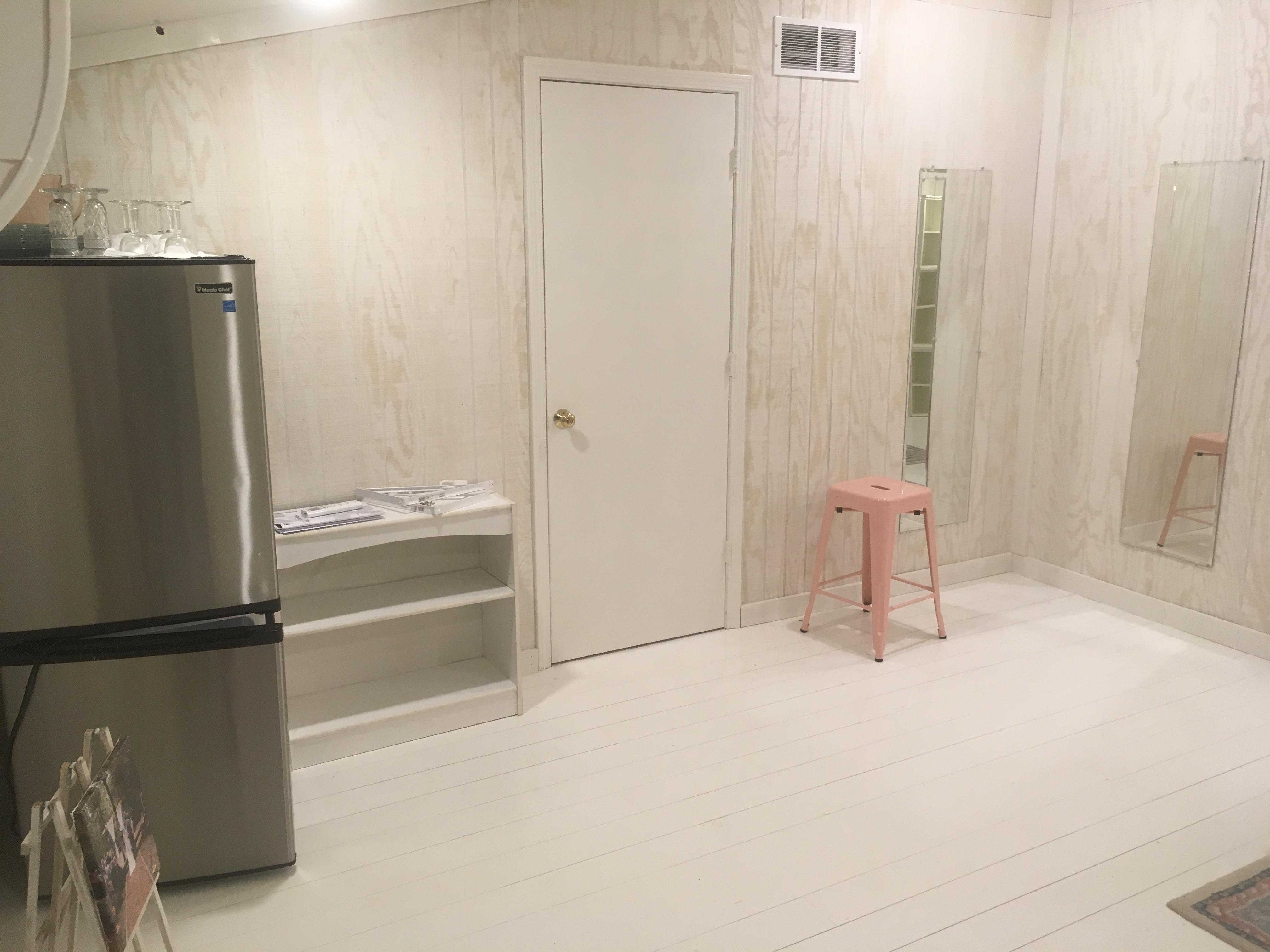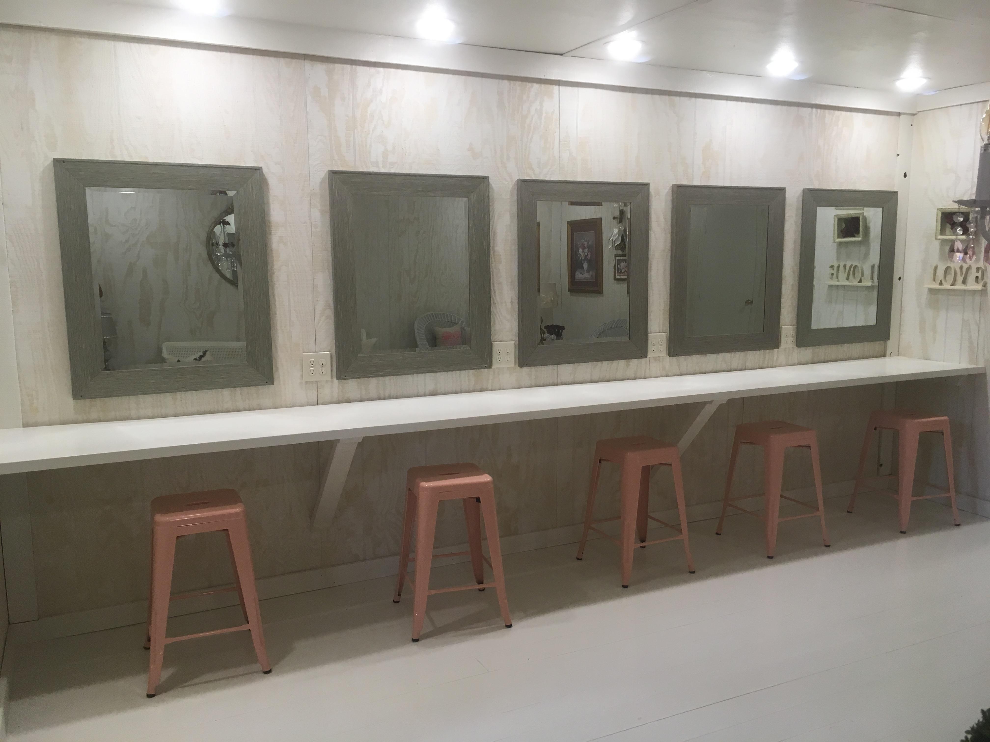 * 5 prep stations * comfortable couch, 2 chairs & oversized chair for the bride to lounge in * refrigerator * air conditioning/heat * cubbies for "stuff" * suitable hanging space for clothing