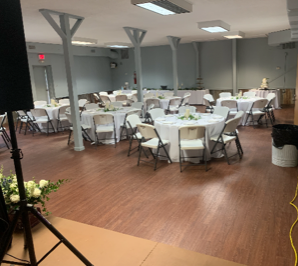 * painted concrete floor - perfect for dancing * wooden cable spool (heavy & large) makes a great cake table * air conditioning/heat * tables & chairs are available to rent * no obstructed views, as this space is wide open