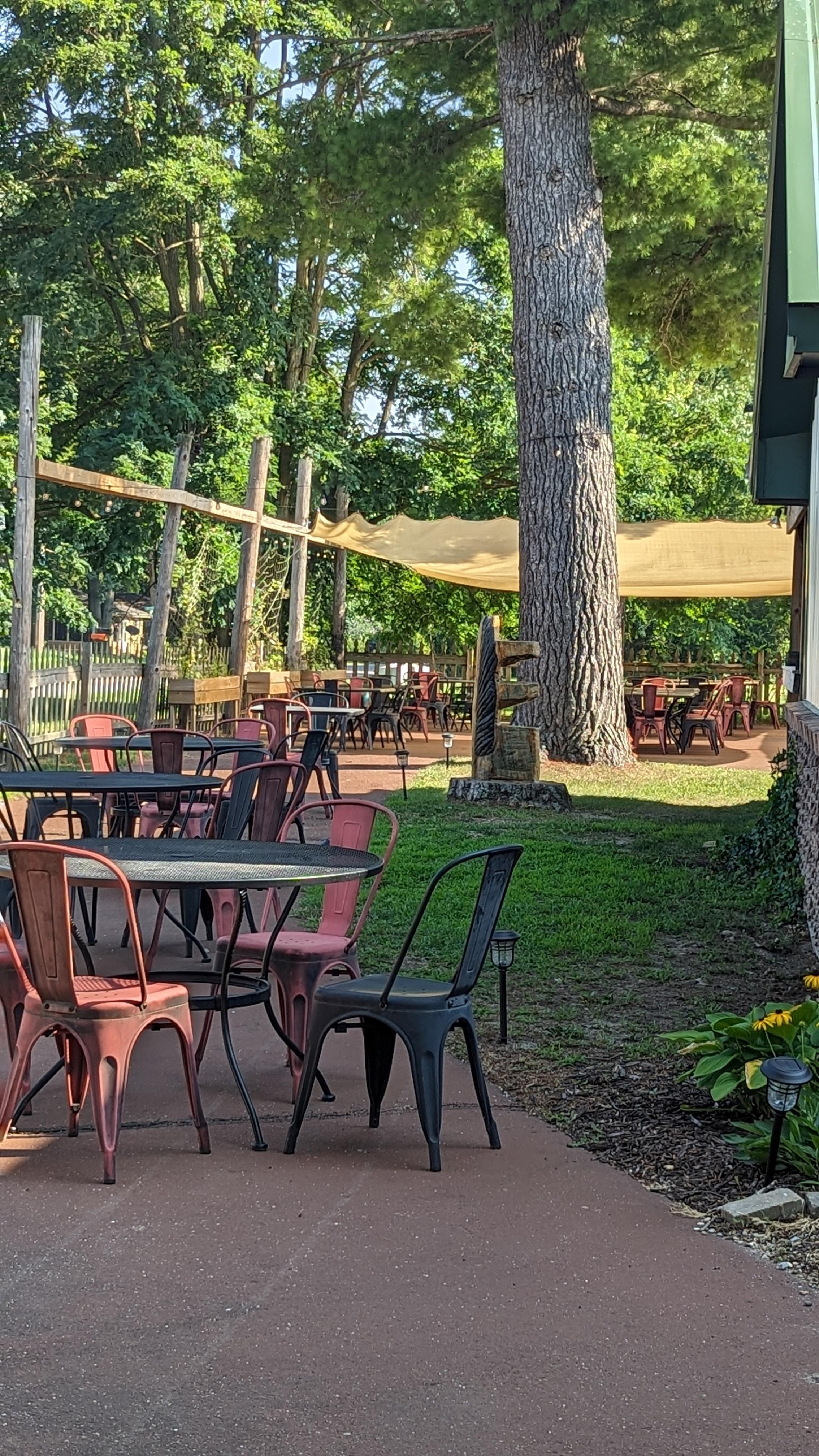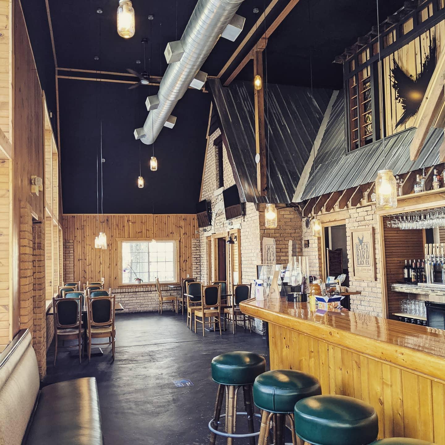 Stretching alongside the building, it features a private bar, planters, a living hops wall, and two serene garden areas. Seating up to 200 at round tables, the space is accented by carved trees and anchored by Lucy, a majestic 100-year-old pine.