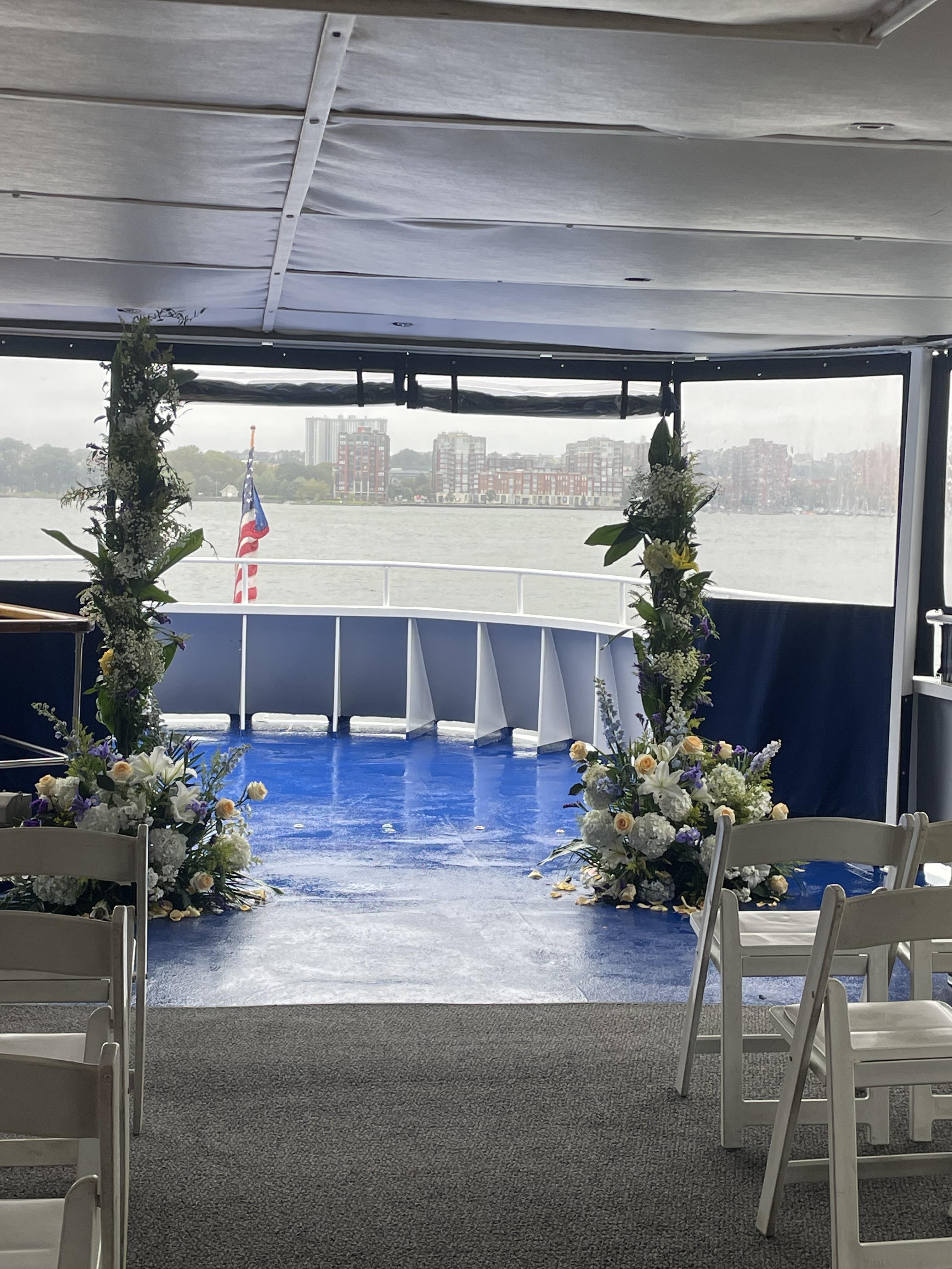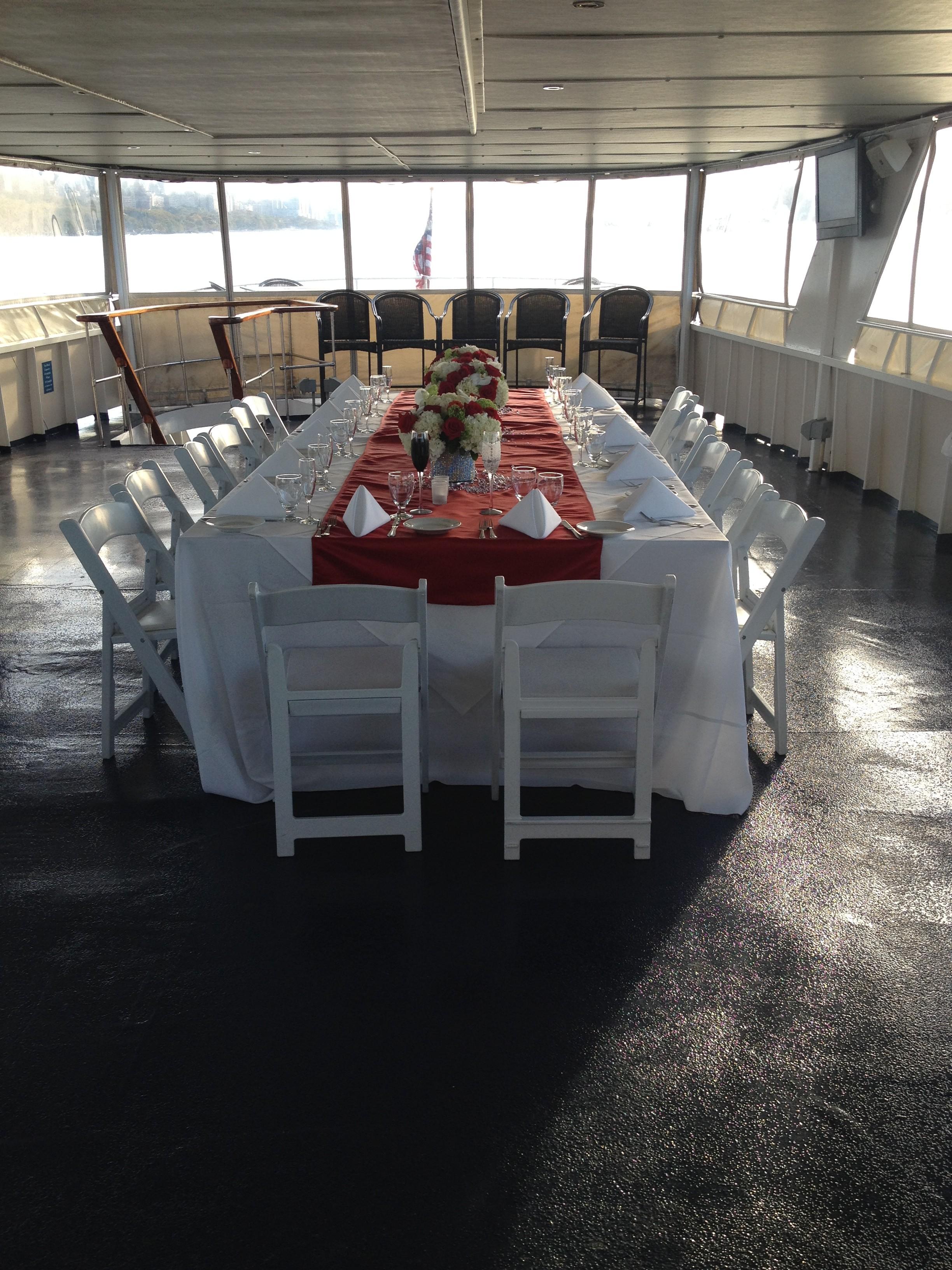 5 1/2 hour charter to include 30 minutes guests boarding, 30 minute ceremony, 4 hour cruise, 30 minutes for guest disembarking, buffet or seated dinner, premium open bar with champagne toast, Captain and marine crew, Chief Stewart and staff along with all taxes and fees