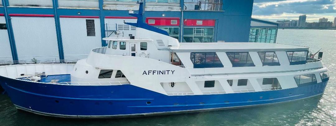 The Affinity Yacht, a luxurious yet affordable option for yacht rentals in NYC, was originally built in 1967 and recently refurbished to blend modern comfort with historical charm. It offers climate-controlled areas, a spacious top deck, and breathtaking views of New York City. With customizable furniture arrangements, a state-of-the-art sound system, and flat-screen TVs, the yacht ensures a memorable experience for any event. The Affinity is the perfect venue for celebrations, set against the stunning NYC skyline.