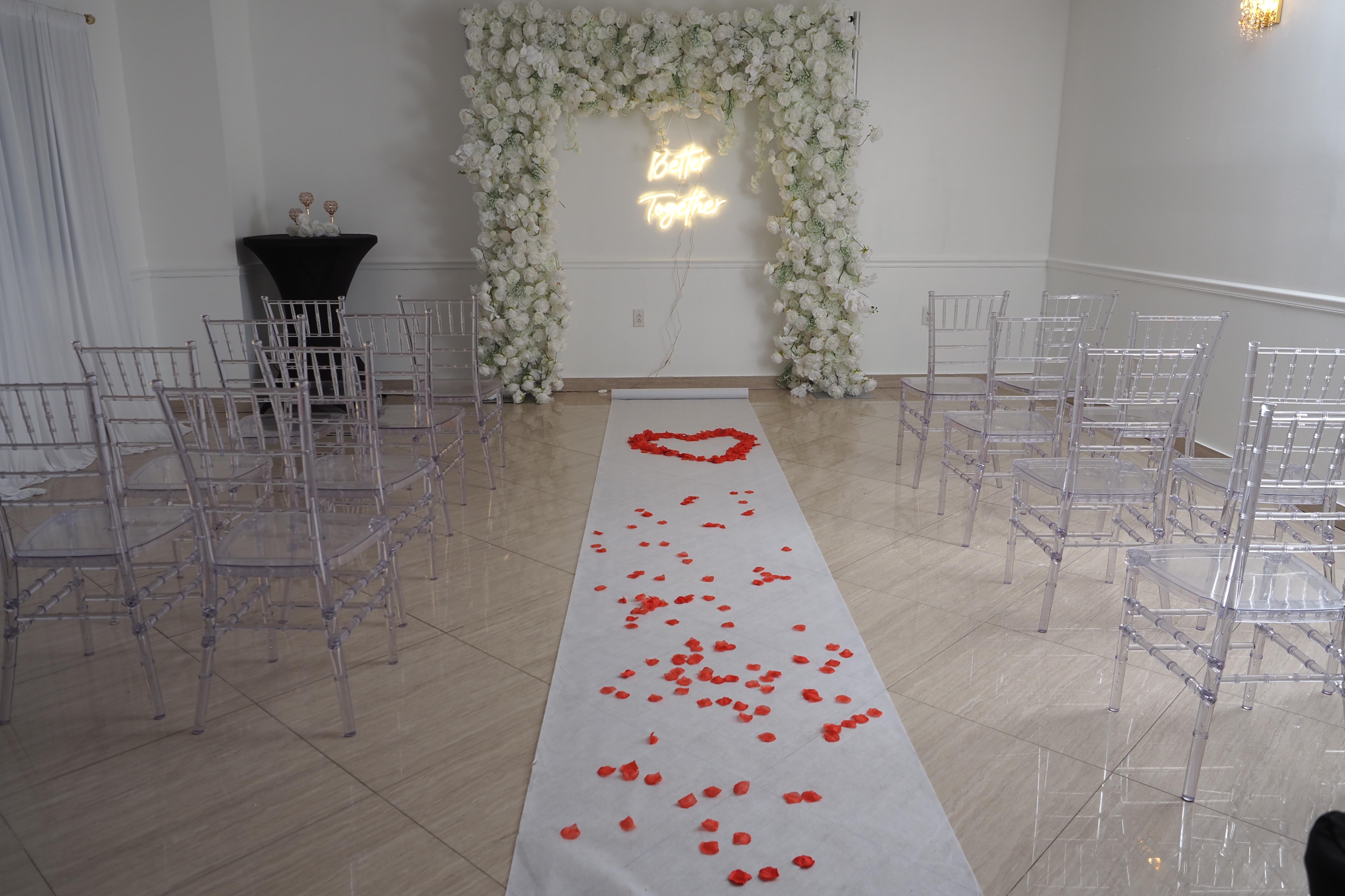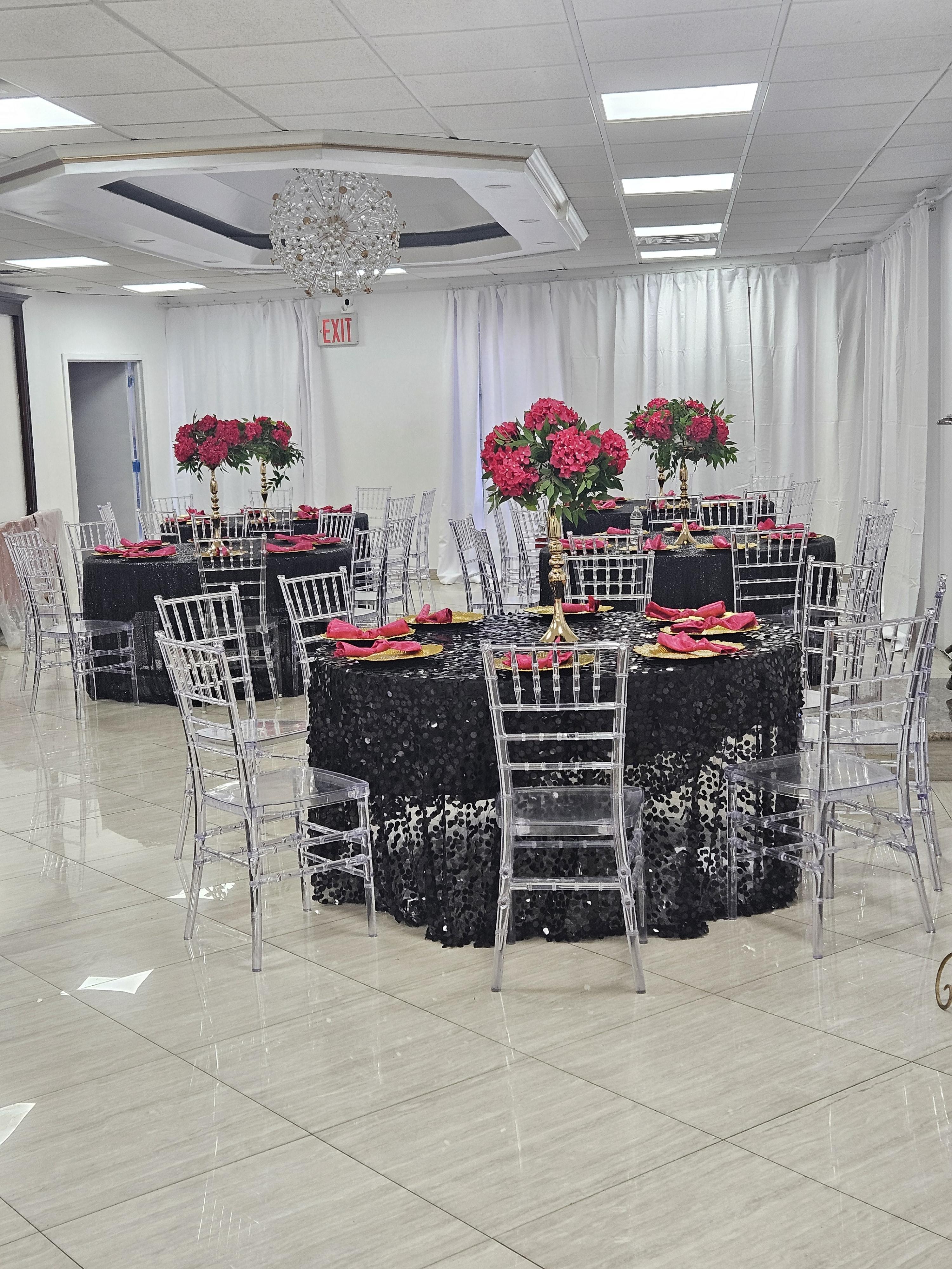 Affordable Event's Hall a charming, affordable venue nestled in the heart of Ozone Park, Queens. We offer two flexible indoor spaces- our Grand Hall and Micro Hall- perfect for weddings, receptions proposals, and more. With elegant touches like a loveseat throne, bar and food station, and included amenities such as tables, chairs, and WIFI , couples loves how customizable and hassle-Free their event can be. Our team takes pride in hosting unforgettable moments, whether you're planning an intimate gathering or a grand celebration of up to 200 guests. Fun fact: Our venue was by a woman-owned business with community and culture at its heart!