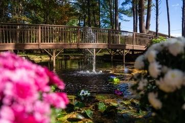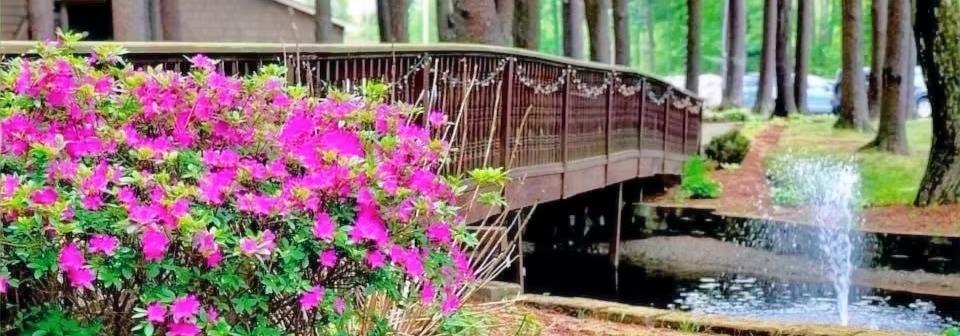 •Three gazebos •75-foot bridge amidst a dense pine grove. •Mini Golf Area •The Grounds can be used for lawn games and inflatables. •Sand Volleyball Court •Outdoor events can accommodate up to 2000 people. •The Pavillion Room deck has a detachable railing which can be converted to a stage for hosting outdoor events/concerts.