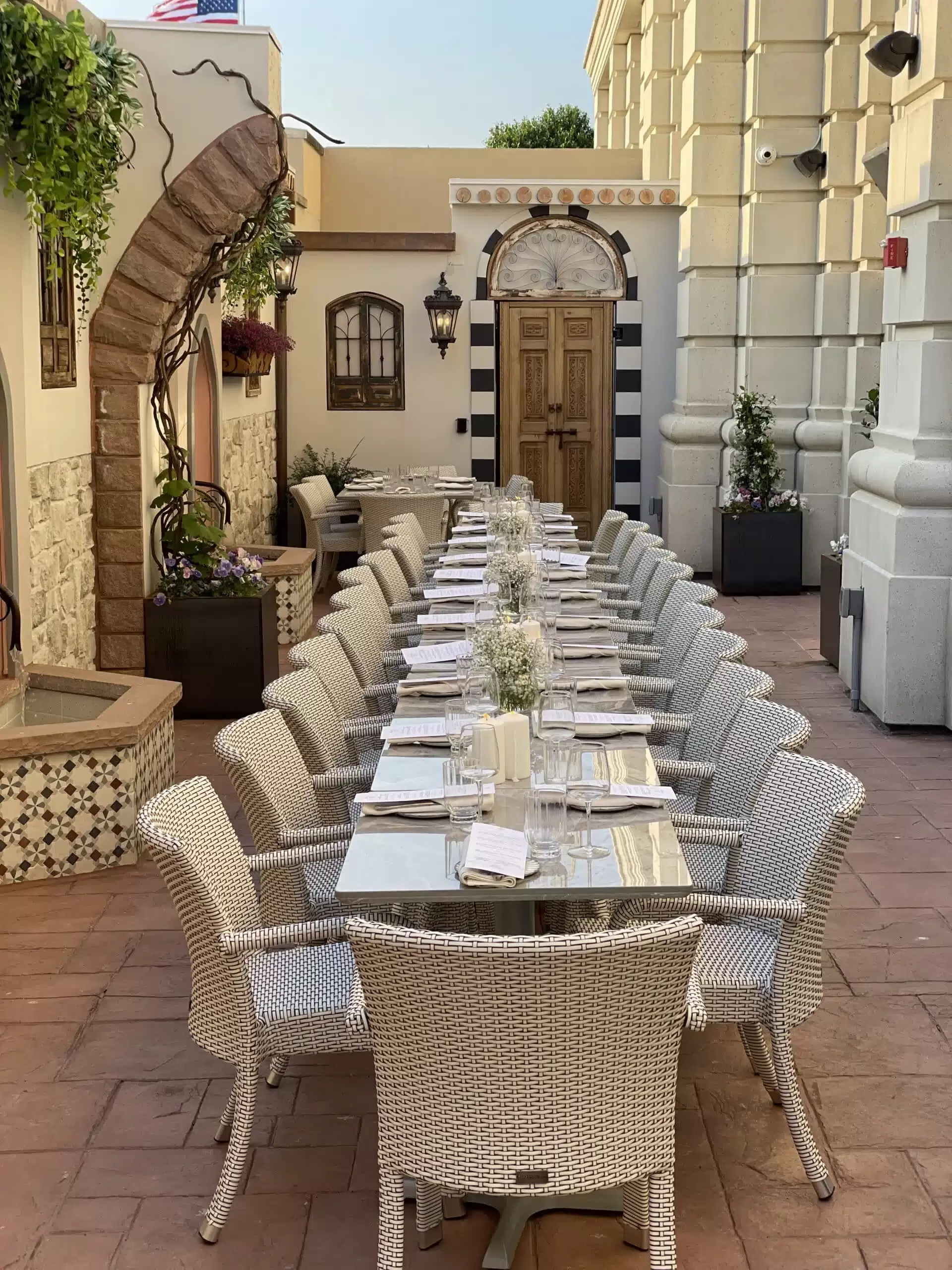 Soak up the Sun, stare at the stars, and feel the warm-summer breeze all from Ammoora’s secluded open-air Courtyard. Light, bright intricate stone walls, accented with colorful mosaic wall fountains, lush jasmine, vines, and poppy florals giveaway to a delightful afternoon celebration, romantic evening, or festive social gathering.