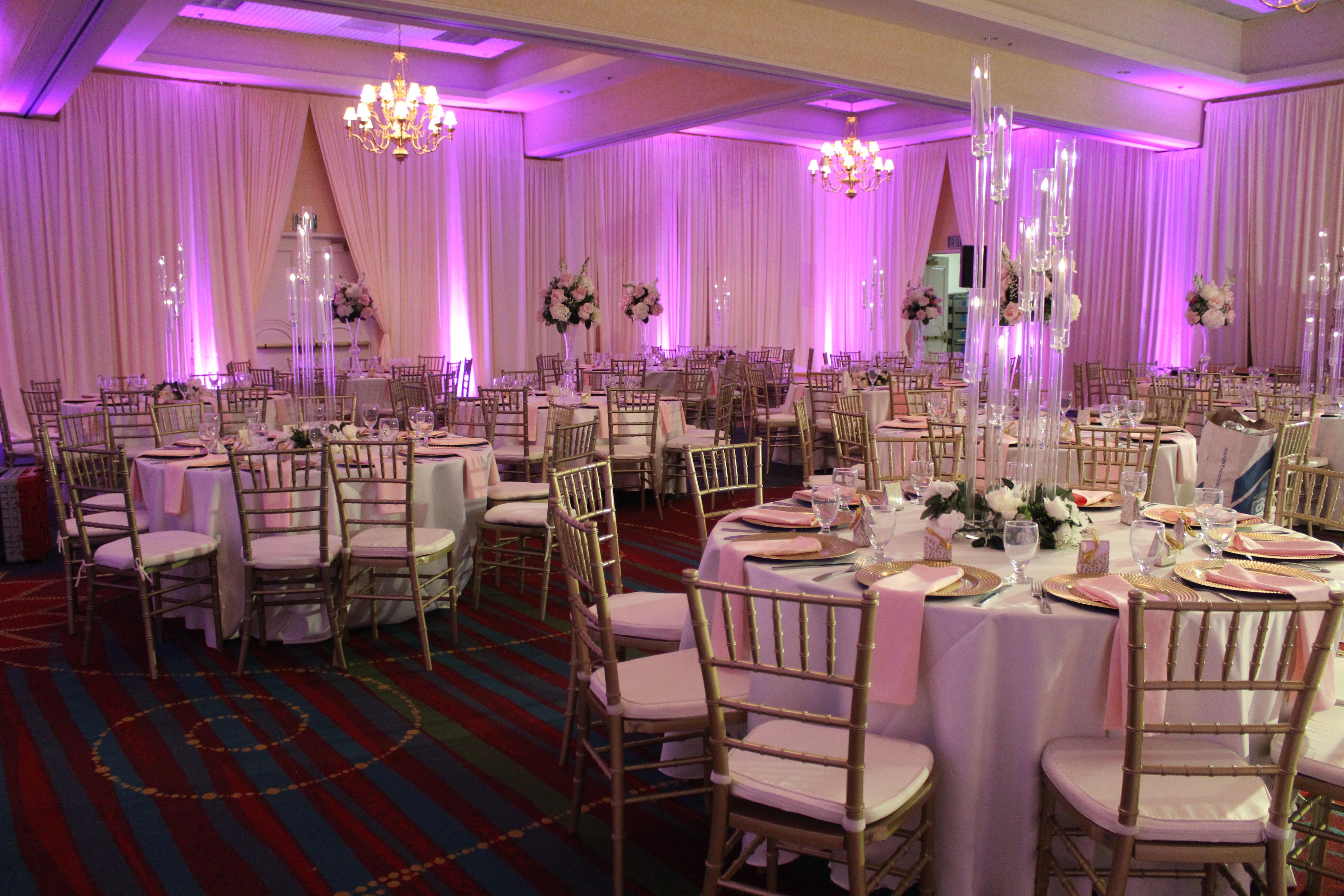 Step into a world of charm and sophistication at our beautifully appointed ballroom – the perfect setting to bring your dream wedding to life. With its soaring ceilings, sparkling chandeliers, and over 10,000 square feet of flexible event space, this venue is designed to impress. The grand ballroom features: Elegant lighting and rich, vibrant carpet that adds warmth and personality to your celebration Versatile layouts for ceremonies, receptions, and banquets – whether you're planning an intimate gathering or a lavish affair Neutral tones and classic décor that can be customized to match any wedding theme On-site catering and event planning professionals to ensure a seamless experience