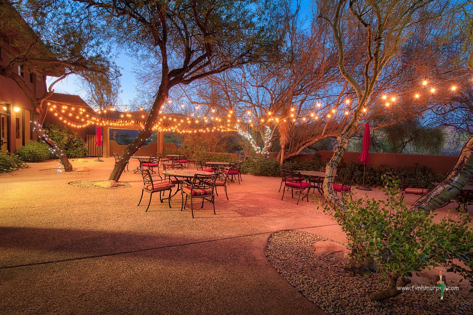 Bistro Lights, Tree canopy, Intimate and private setting with a view of the McDowell Mountain at Sunset