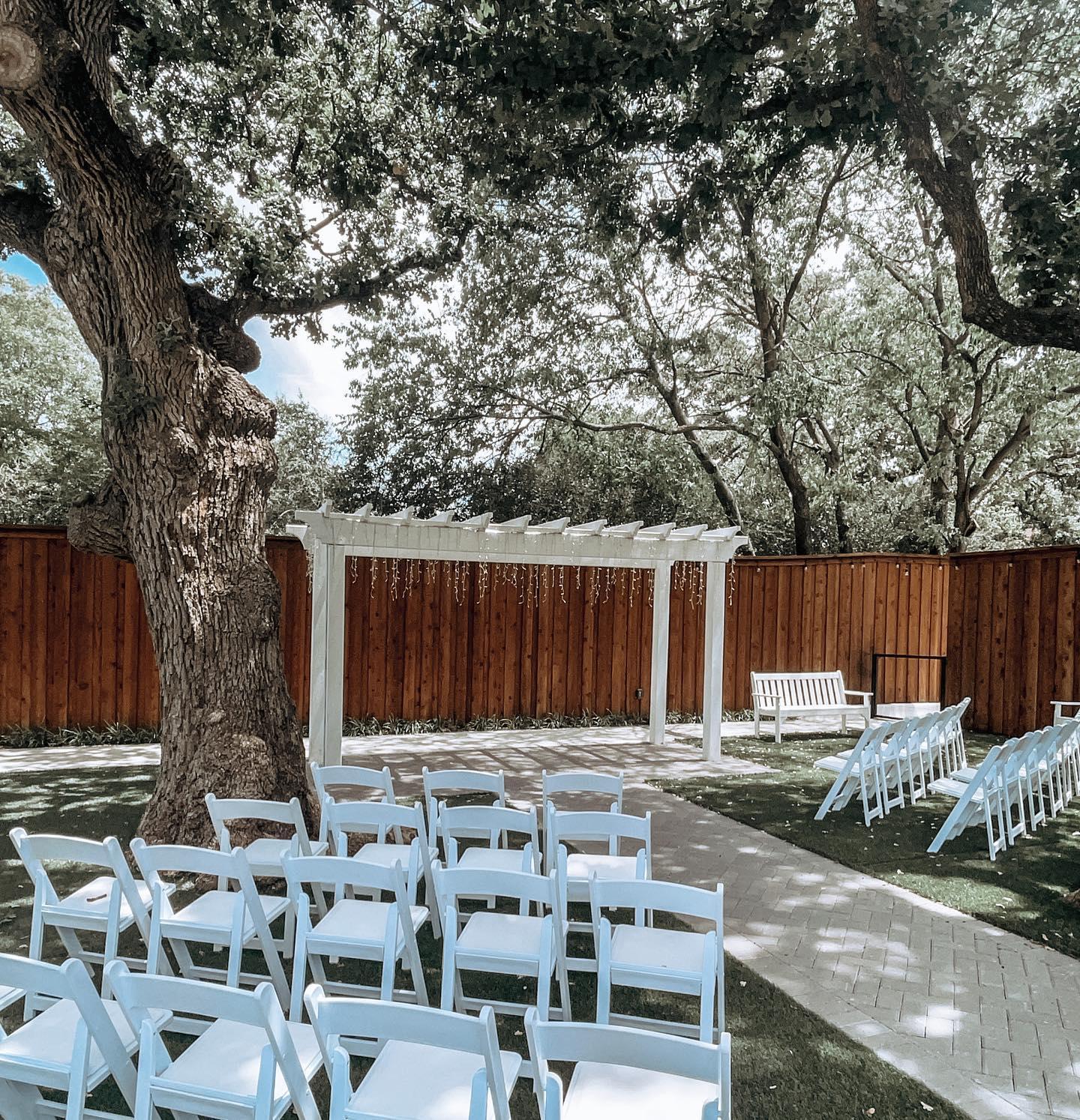 - Rowlett Room - Front Courtyard - Bridal House - Grooms Suite - Catering Room - Champagne Chiavari Chairs - Banquet Tables - Guest Table Linens - Music & Speakers - 1-hour Rehearsal