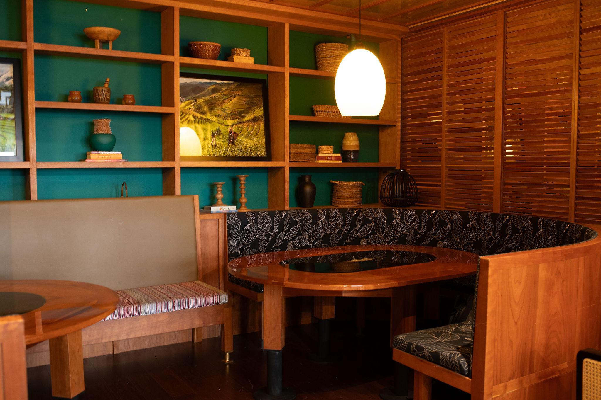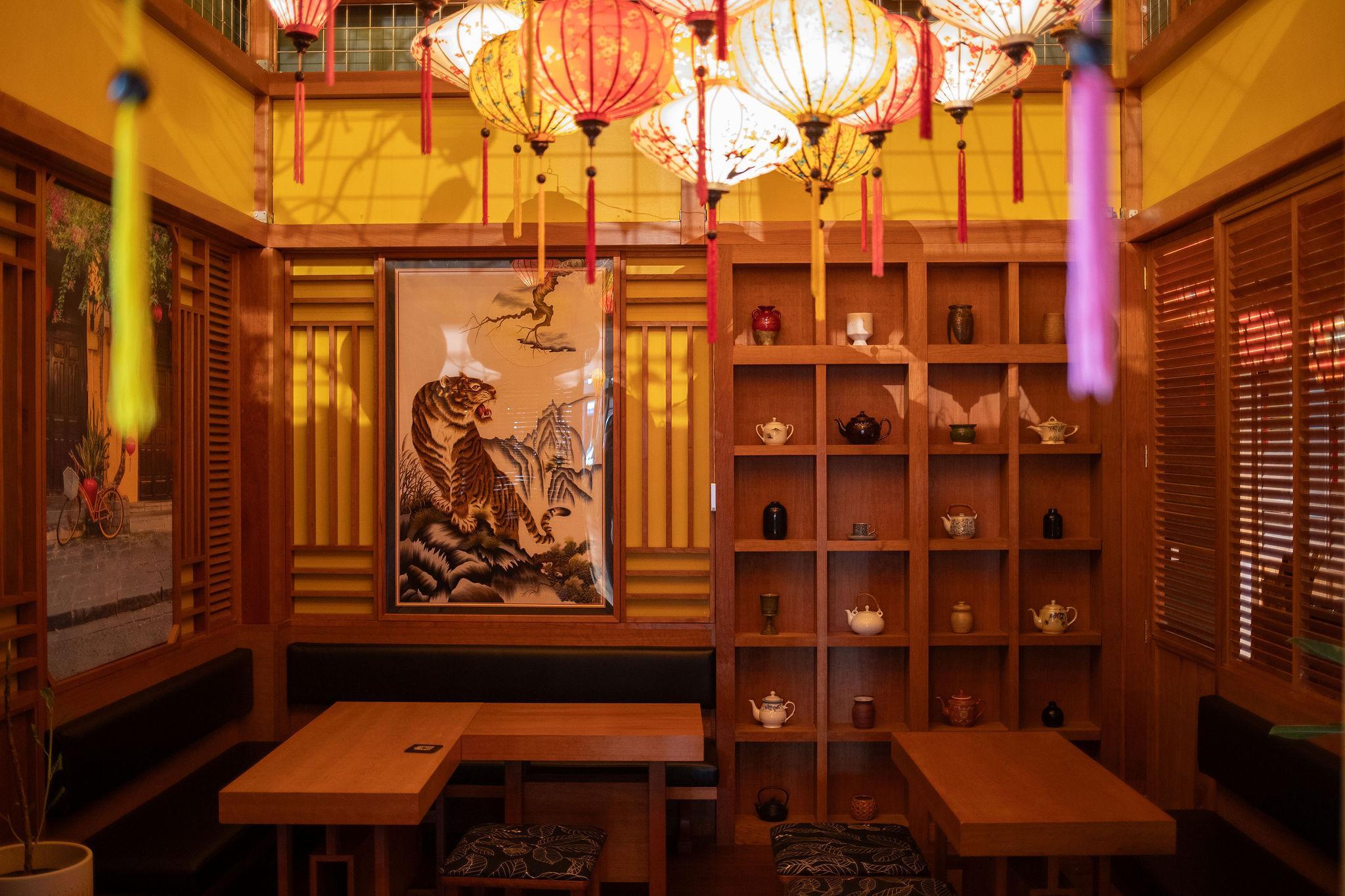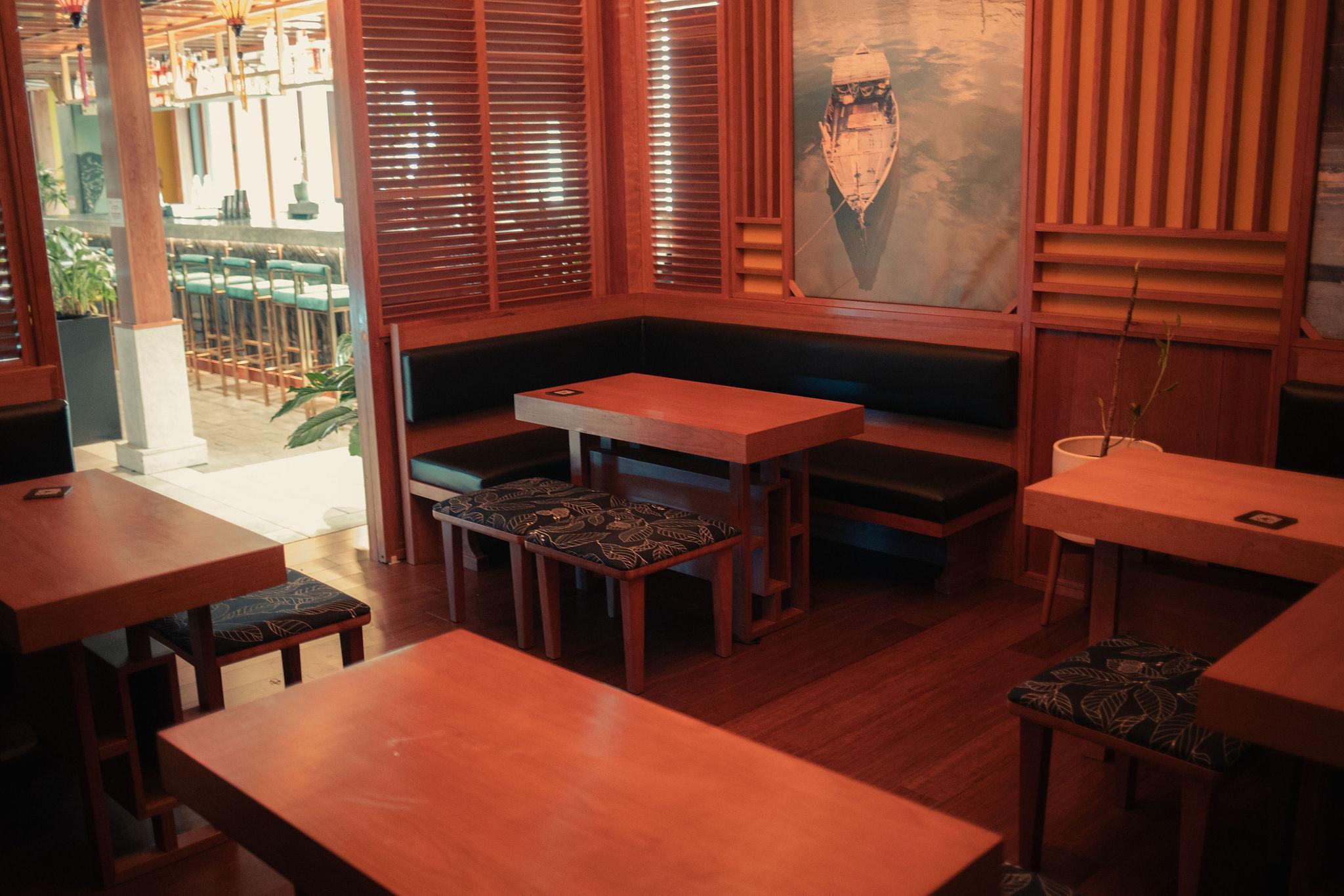 This room features wooden sliding doors that can be opened up to create an expansive space or closed for added privacy. The intimate family-style tables, accompanied by U-shaped seats, ensure that all of your guests enjoy a front-row view of each other's company. For larger gatherings, this room can also be combined with our Hanoi Room to offer additional seating capacity. Seating: U-shaped booth seating & family-style tables