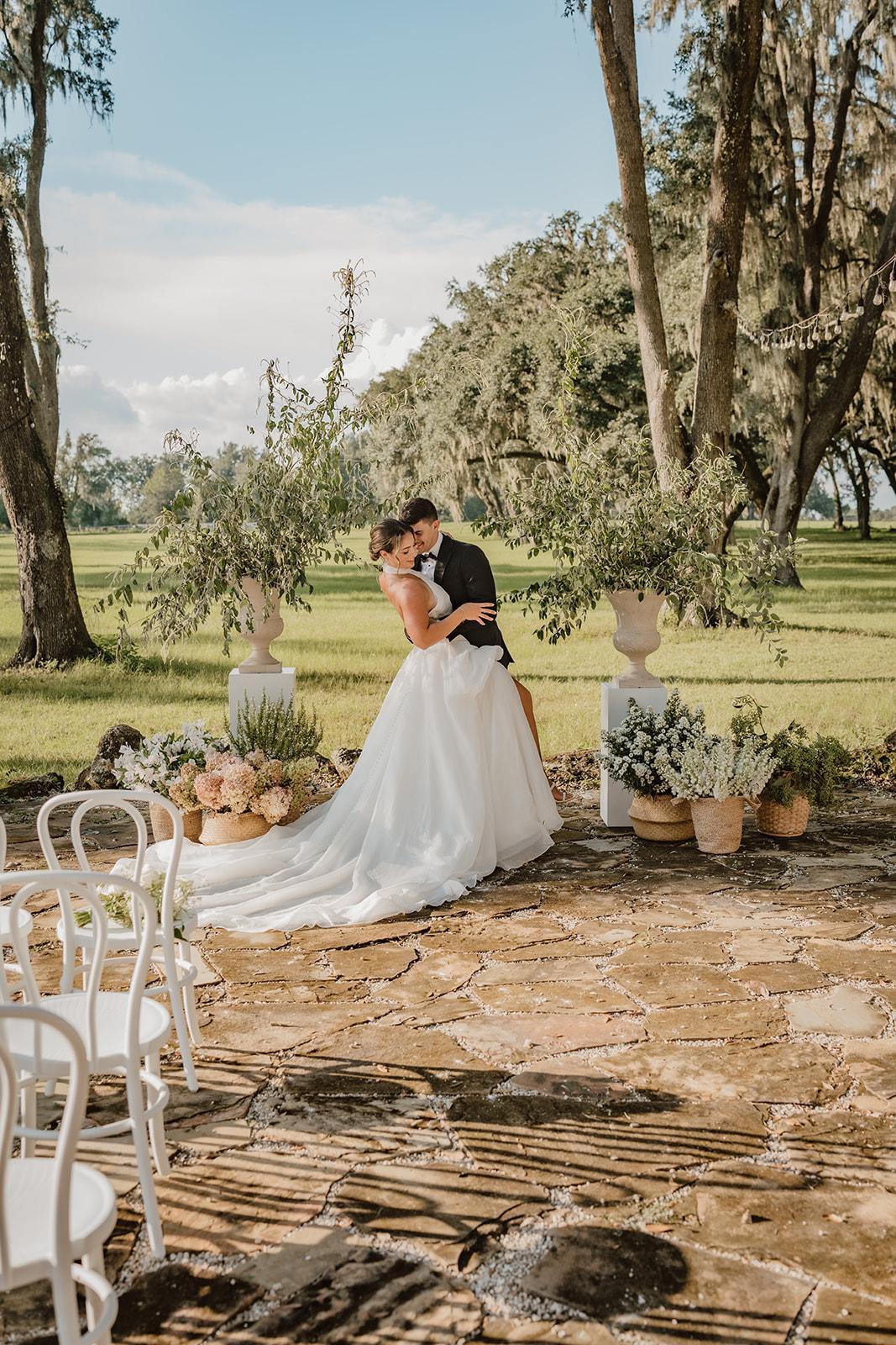 Andalusian Oaks is located in Central Florida between Orlando, Tampa, and Jacksonville. Here you can indulge in your stunning wedding day. Spend time in our lemon grove or even in our magical oak forest. The 31-acre estate is made up of a 4000 sqft piazza, bar, gardens, 2500 sqft heated and cooled indoor space, oak forest, and much more. You and your guests might find yourselves exploring the property and having your own romantic moments away from the crowds.