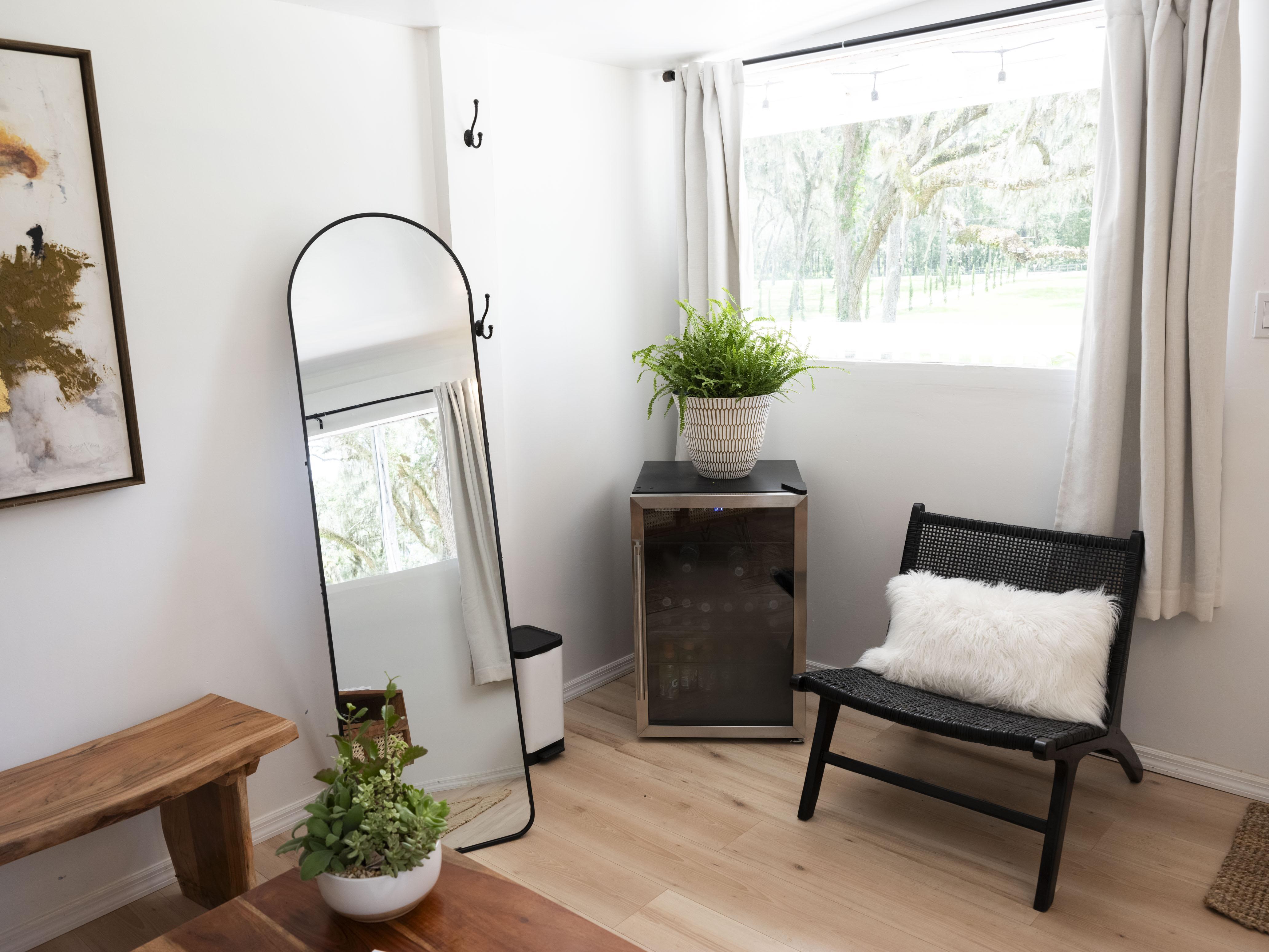 This is the room where the groom can get ready. It is right above the bar and had a mini fridge, hangers, and AC.