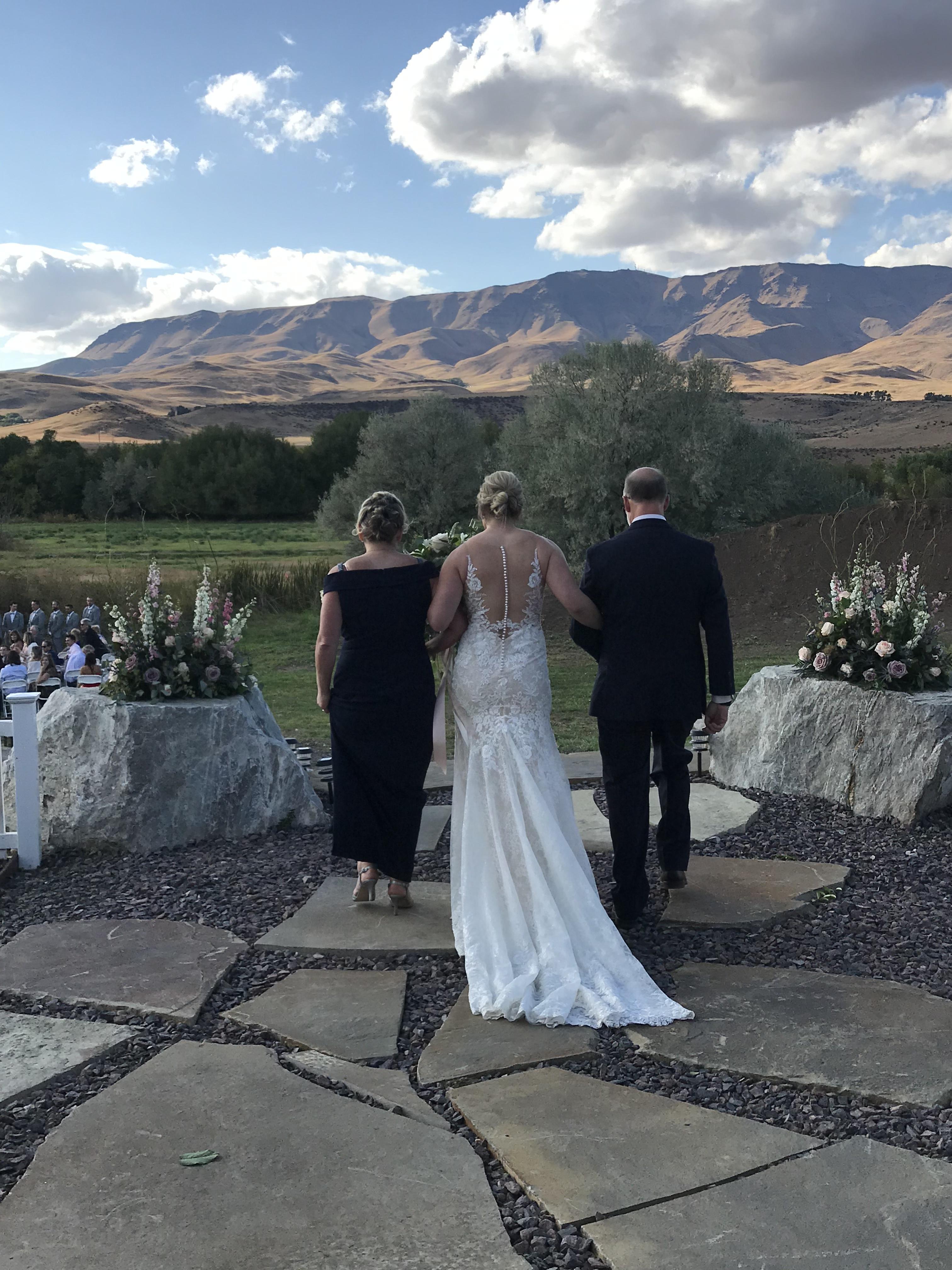 This space is our outdoor ceremony area that overlooks the Payette Creek and the views of the mountains. It makes the perfect backdrop to say I do!