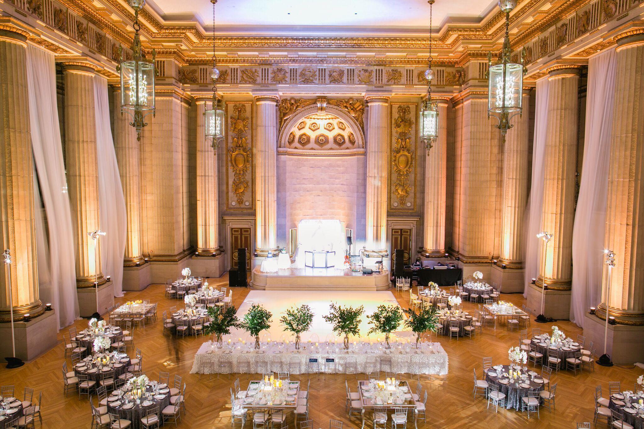 The Andrew Mellon Auditorium stands, without question, among the very finest classical buildings in America. The gilded auditorium and lobbies are among the nation's most magnificent interiors. Inside the ballroom, with a built-in stage as the main focal point, anywhere from 30 to 690 guests can fit comfortably for a seated dinner and program, or up to 1,000 guests can mingle for a standing reception.
