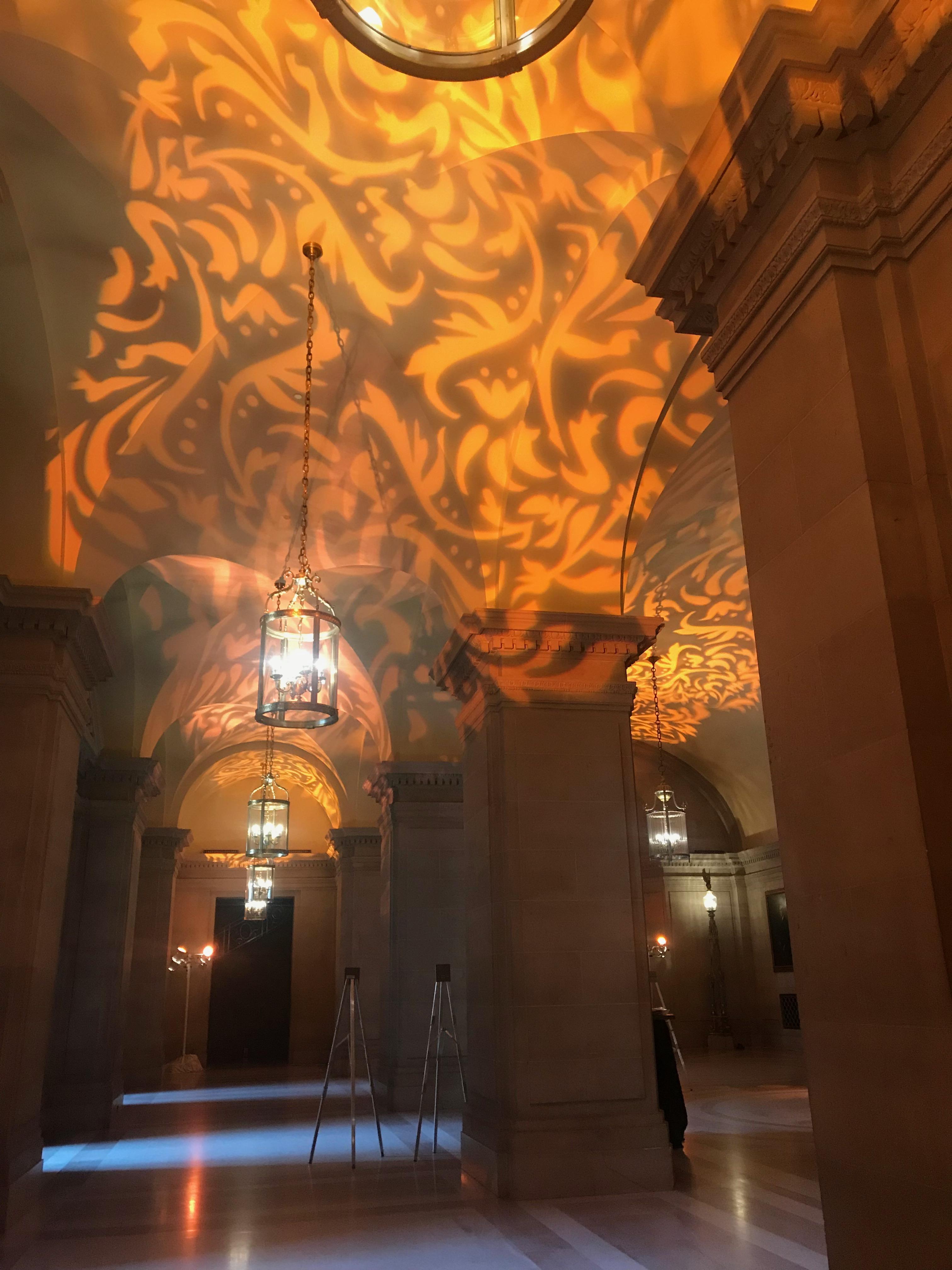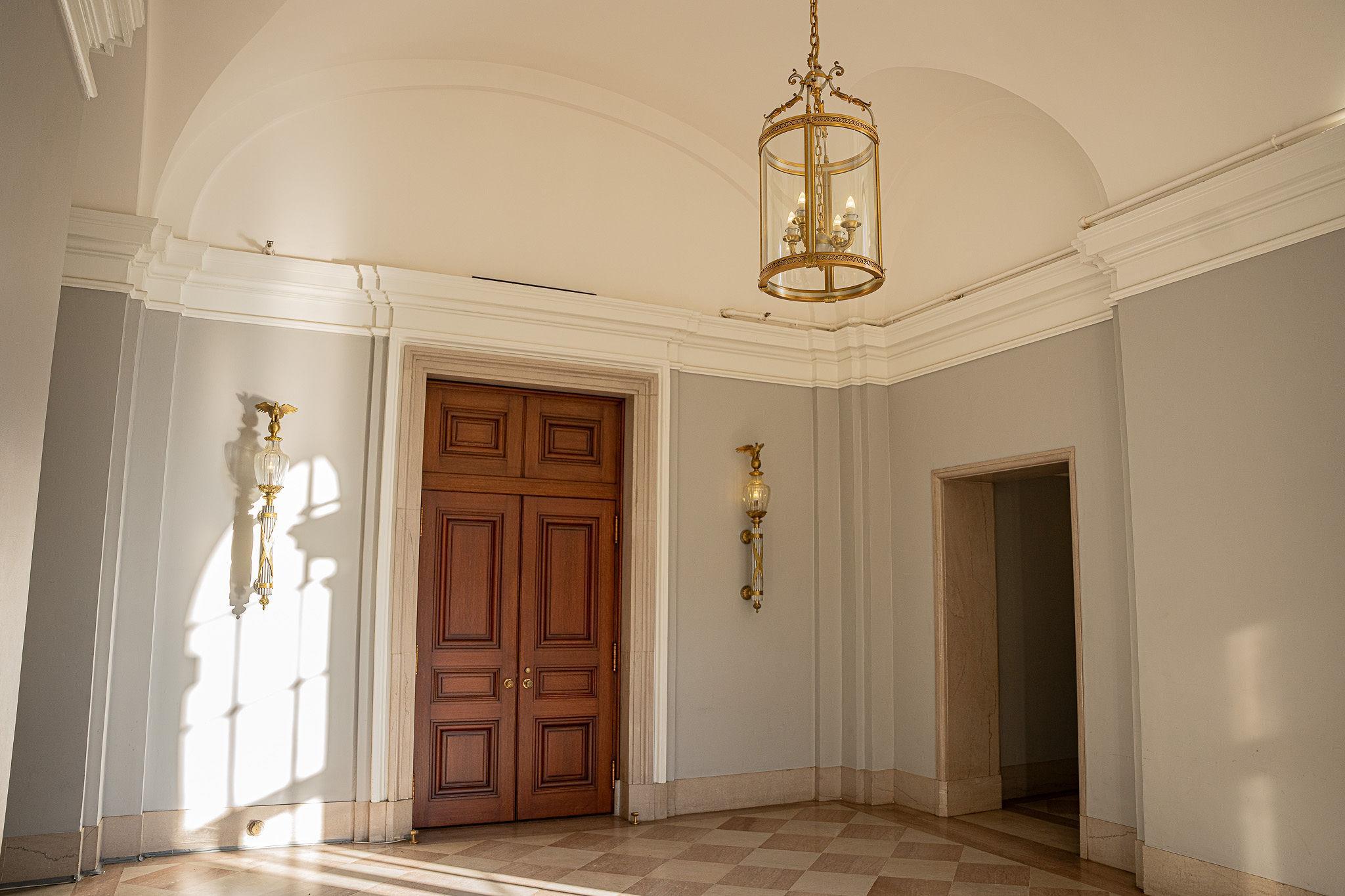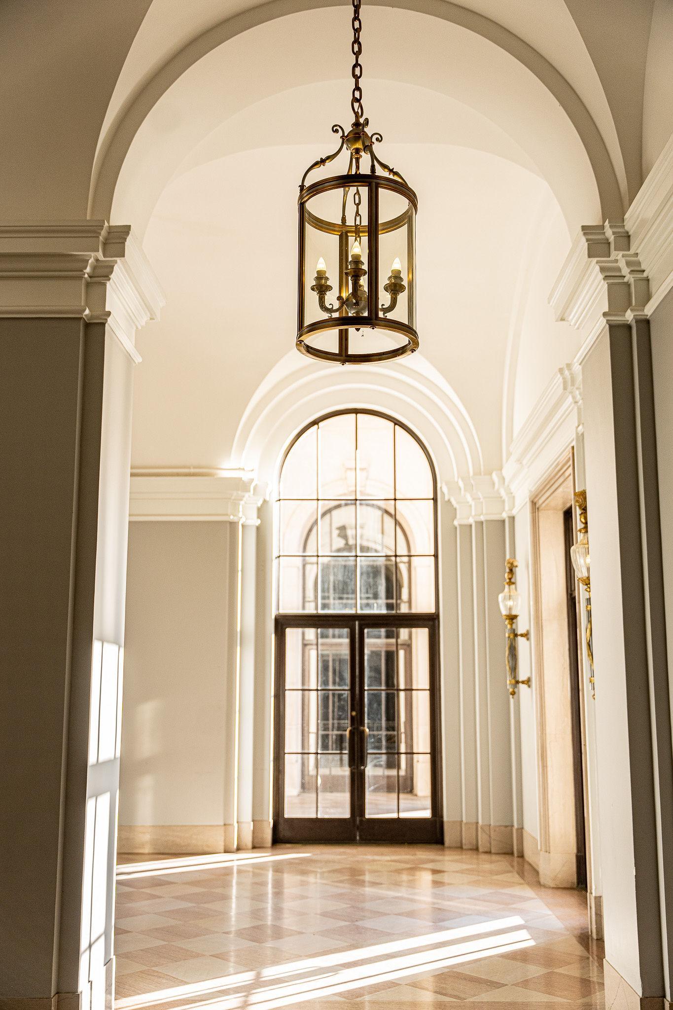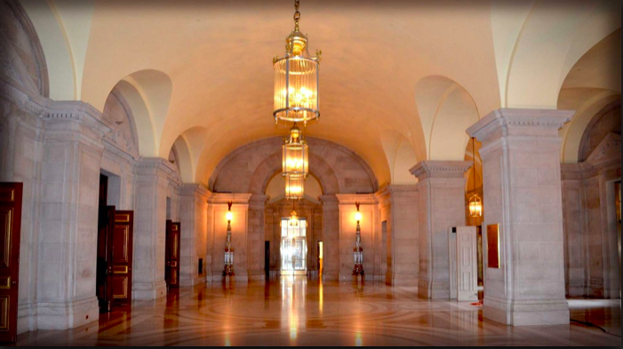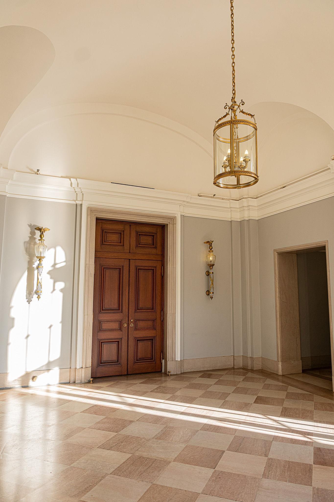 The Andrew Mellon Auditorium stands, without question, among the very finest classical buildings in America. The gilded auditorium and lobbies are among the nation's most magnificent interiors. The marble lobby welcomes guests into the majestic building with space for registration, drinks and coat check.