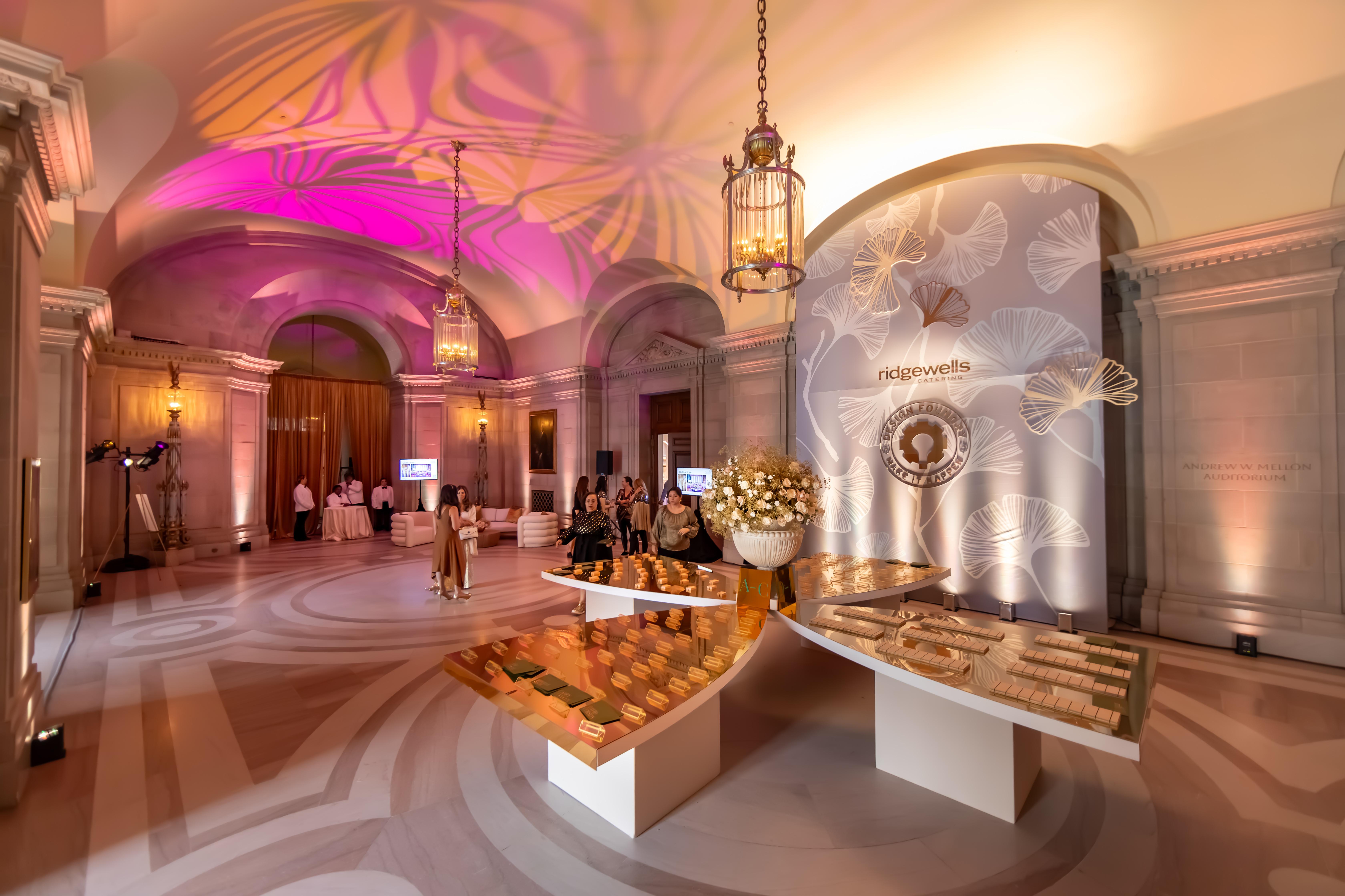 The Andrew Mellon Auditorium stands, without question, among the very finest classical buildings in America. The gilded auditorium and lobbies are among the nation's most magnificent interiors. With its stunning columns and classic styling, over 10,000 square feet of indoor space, and a gorgeous balcony with impressive views of the city, the Andrew Mellon Auditorium is a premier location for weddings, conferences, galas and receptions. Ridgewells Catering actively manages events at the Mellon Auditorium. Our team is uniquely equipped to guide you through every step of the planning process. When you host your event at the Mellon, you also have the opportunity to also book catering, design, and planning services through Ridgewells. From detailed timelines and custom menus to full-service design, staffing, and vendor coordination, we help simplify every detail so that you may relax and enjoy a truly effortless event experience.