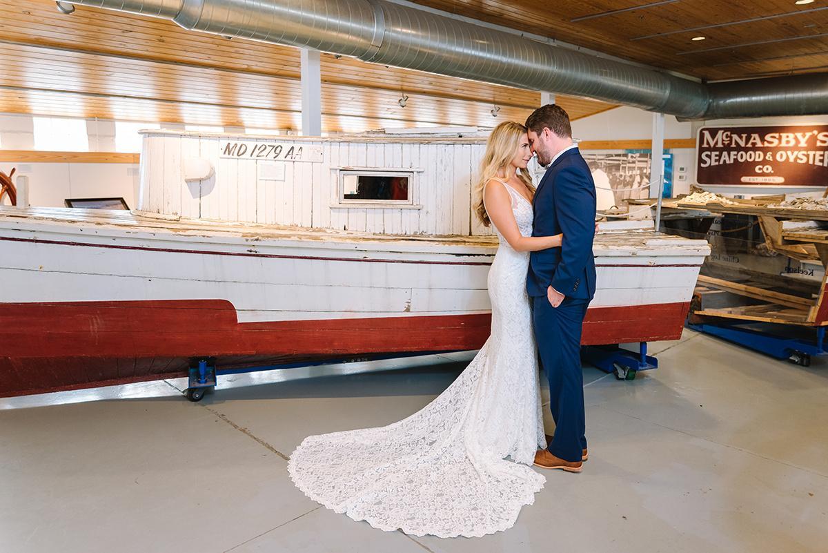 Imagine exchanging vows with the Chesapeake Bay as your backdrop, surrounded by lush landscapes and the charm of a living shoreline. The Annapolis Maritime Museum offers a unique and picturesque setting in America’s Sailing Capital, where you can host your special day right on the water. Enjoy stunning views, an affordable venue, and a true taste of Annapolis. The Annapolis Maritime Museum & Park boasts 2 uniquely charming waterfront wedding venues. The Maritime Museum: located in the Eastport neighborhood of Annapolis, the former McNasby’s Oyster Company building offers outdoor ceremony and indoor reception space with a uniquely Chesapeake Bay vibe. The Park Pavilion: located within our 12-acre park campus along the scenic shores of Back Creek, offers a rustic stone amphitheater ceremony space with an open-air Pavilion reception, that includes a working stone fireplace. The Annapolis Maritime Museum is the coastal venue of your dreams- where history meets the harbor.