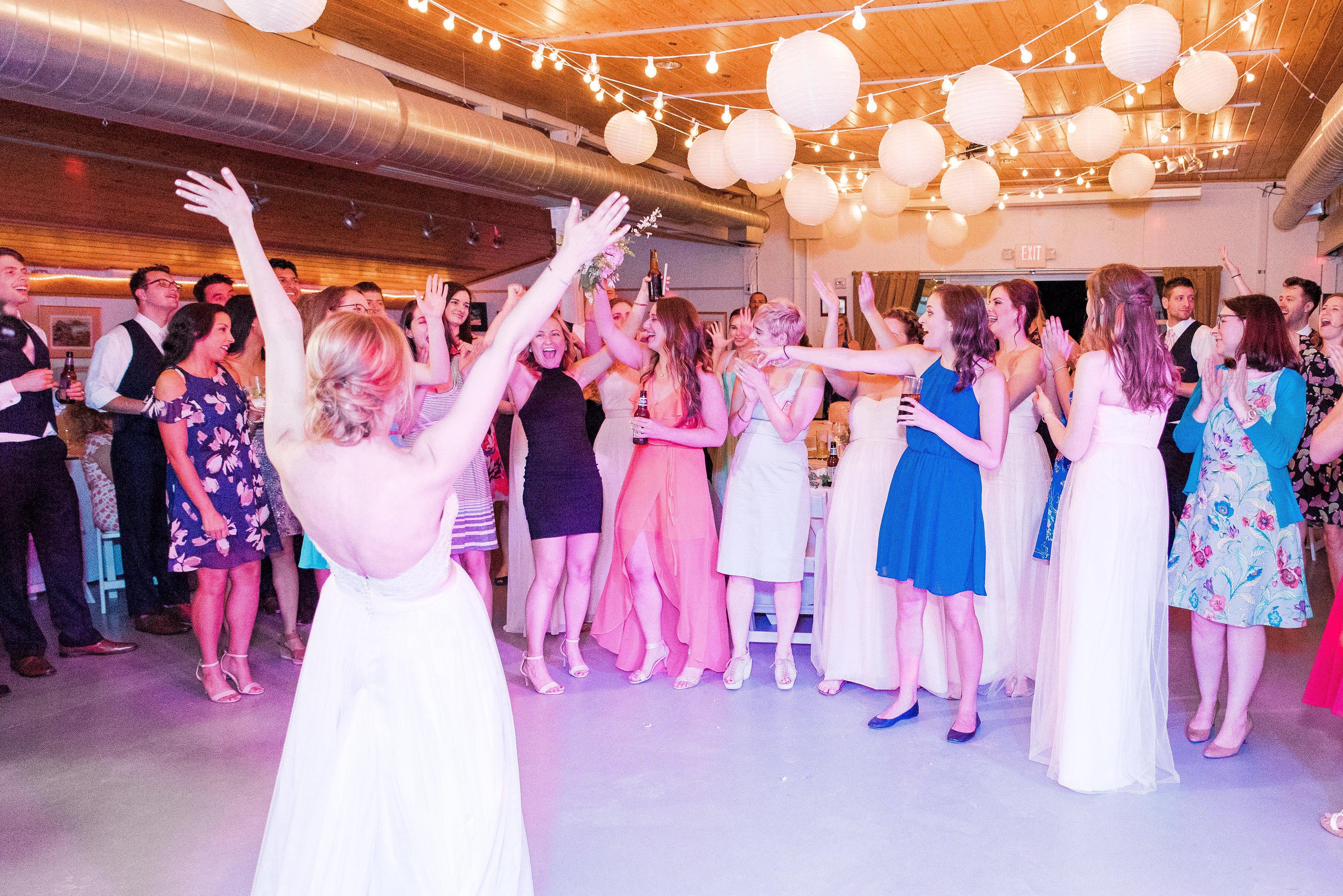 - Dimmable house lighting - Glass garage door that can be opened for easy load-in and load-out for vendors, or left open until 9pm for ambiance - String lights and white paper lanterns hanging from the ceiling - No need for an additional dance floor