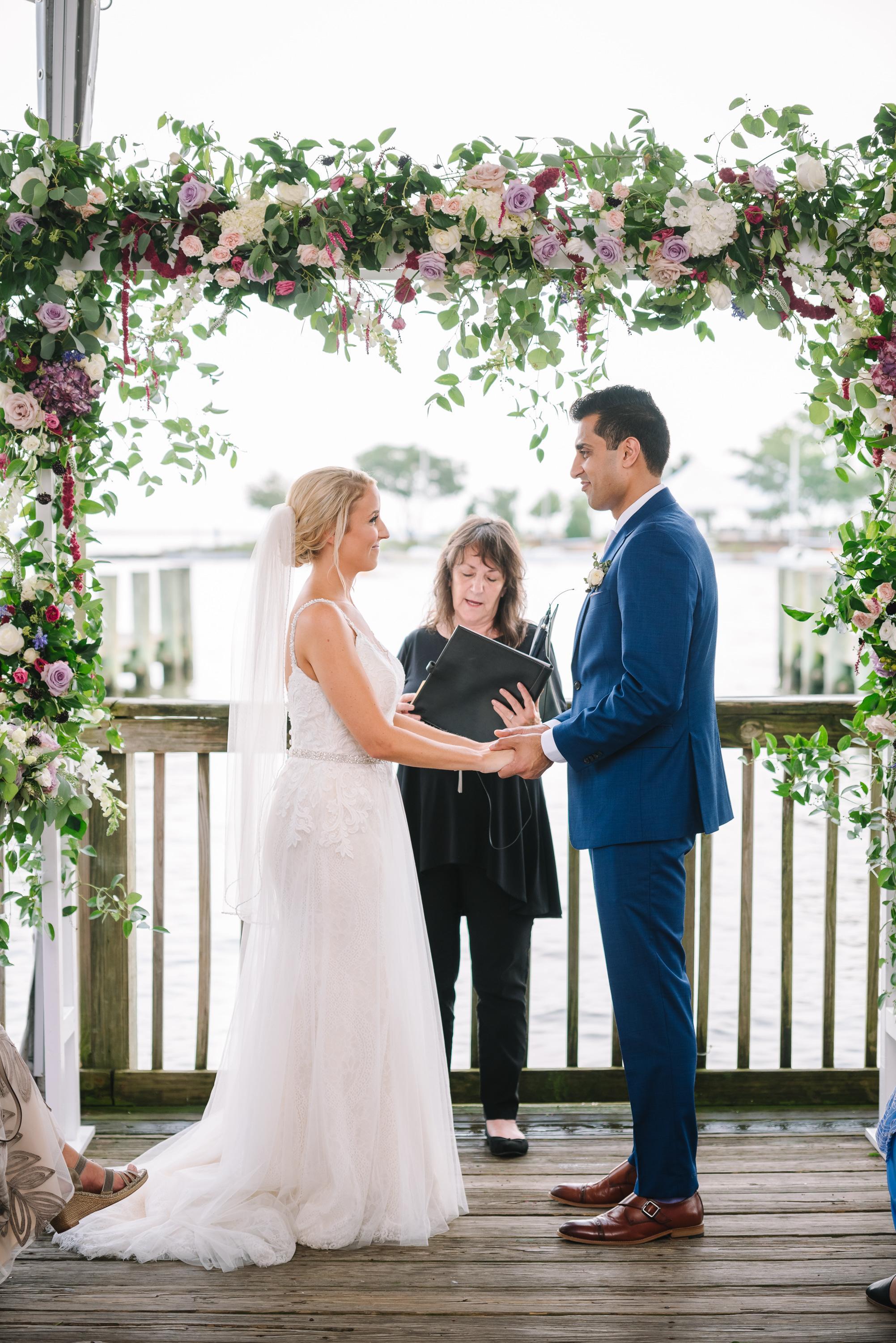Our 1,200 sq ft wooden waterfront deck was newly replaced in 2020. The venue rental includes a custom-built tent which is 11' at the perimeter at 17' at the peak, with clear vinyl side panels which can be pulled shut in the event of wind or rain. The waterfront deck features 180 degree views of Back Creek, and views of the Chesapeake Bay Bridge beyond! Enjoy your wedding ceremony or cocktail hour as boats float by.