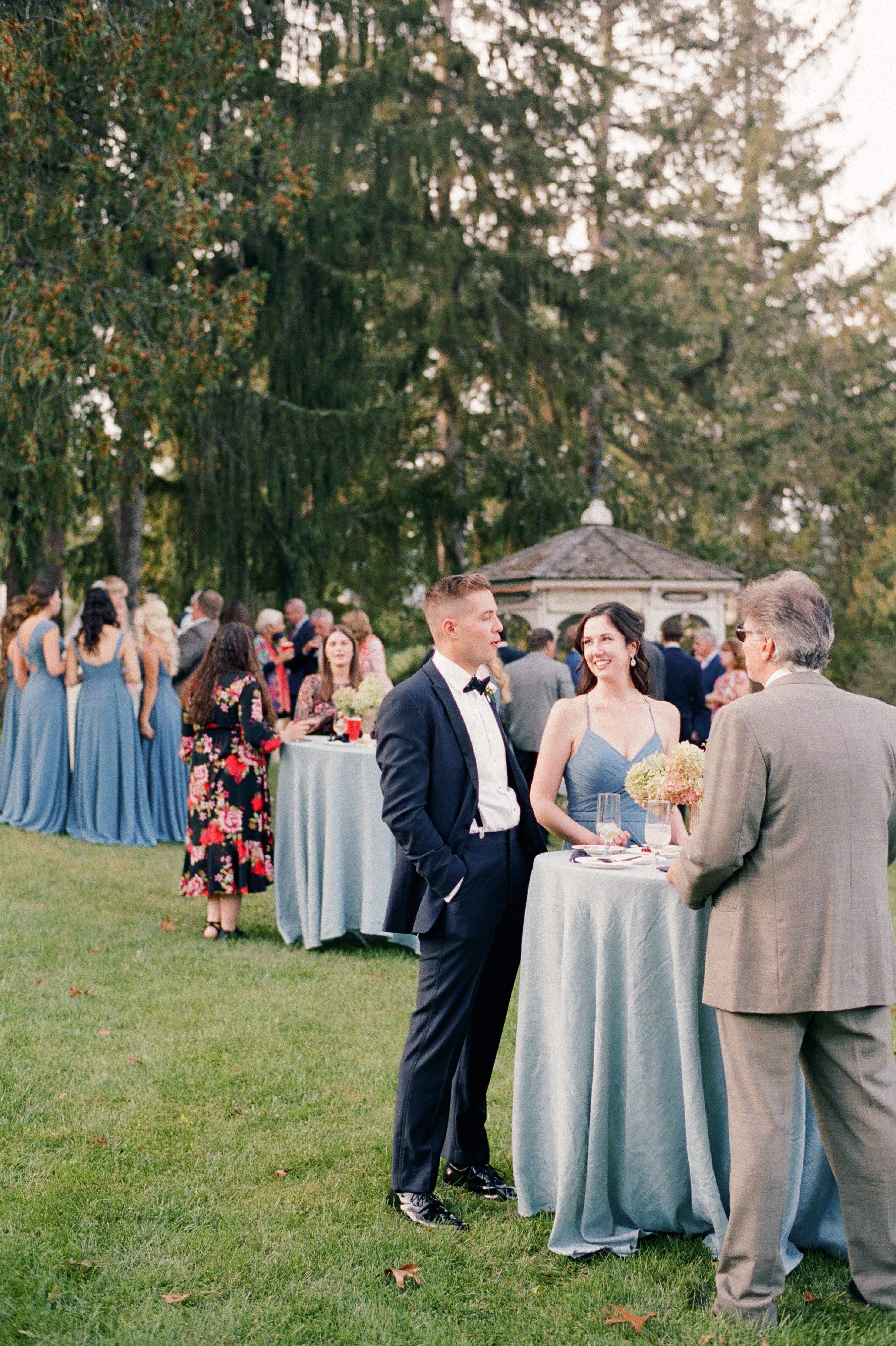 The front lawn is often the setting for tented outdoor receptions. But when a tent is not being used, this area can be utilized for a beautiful outdoor ceremony with the backdrop of oak and pine trees.
