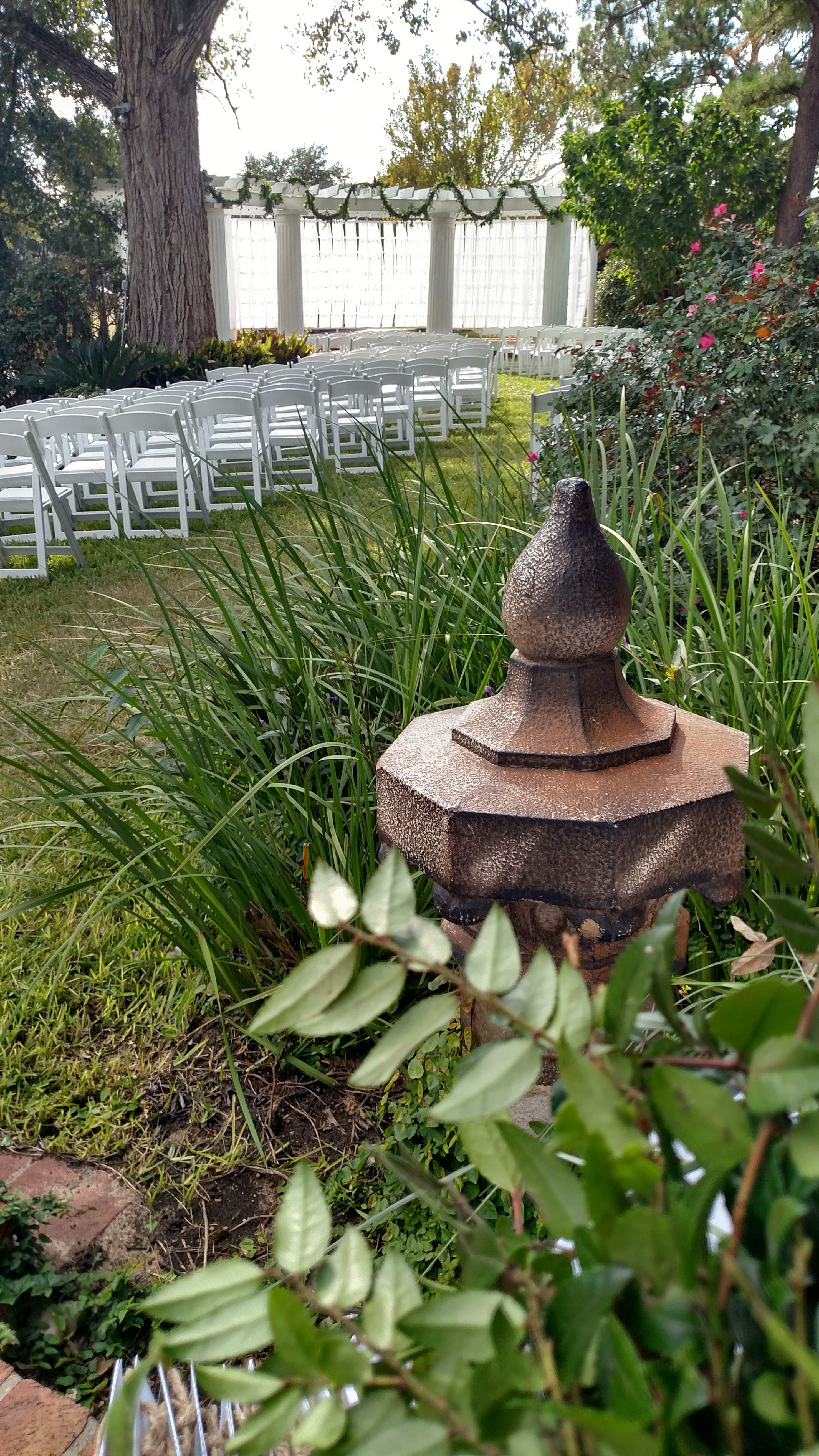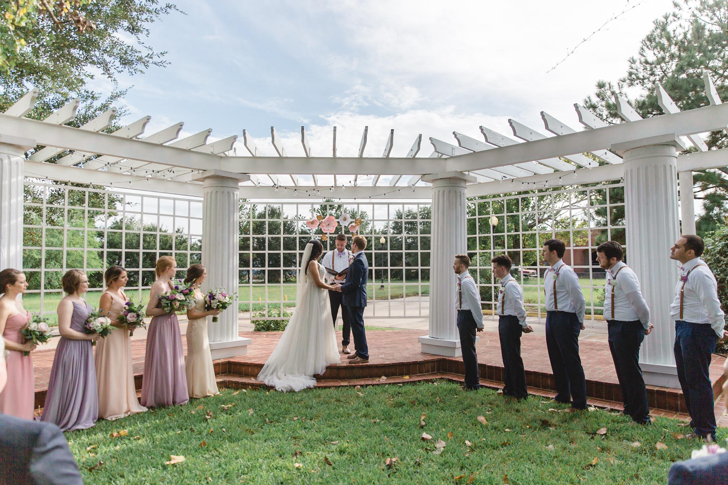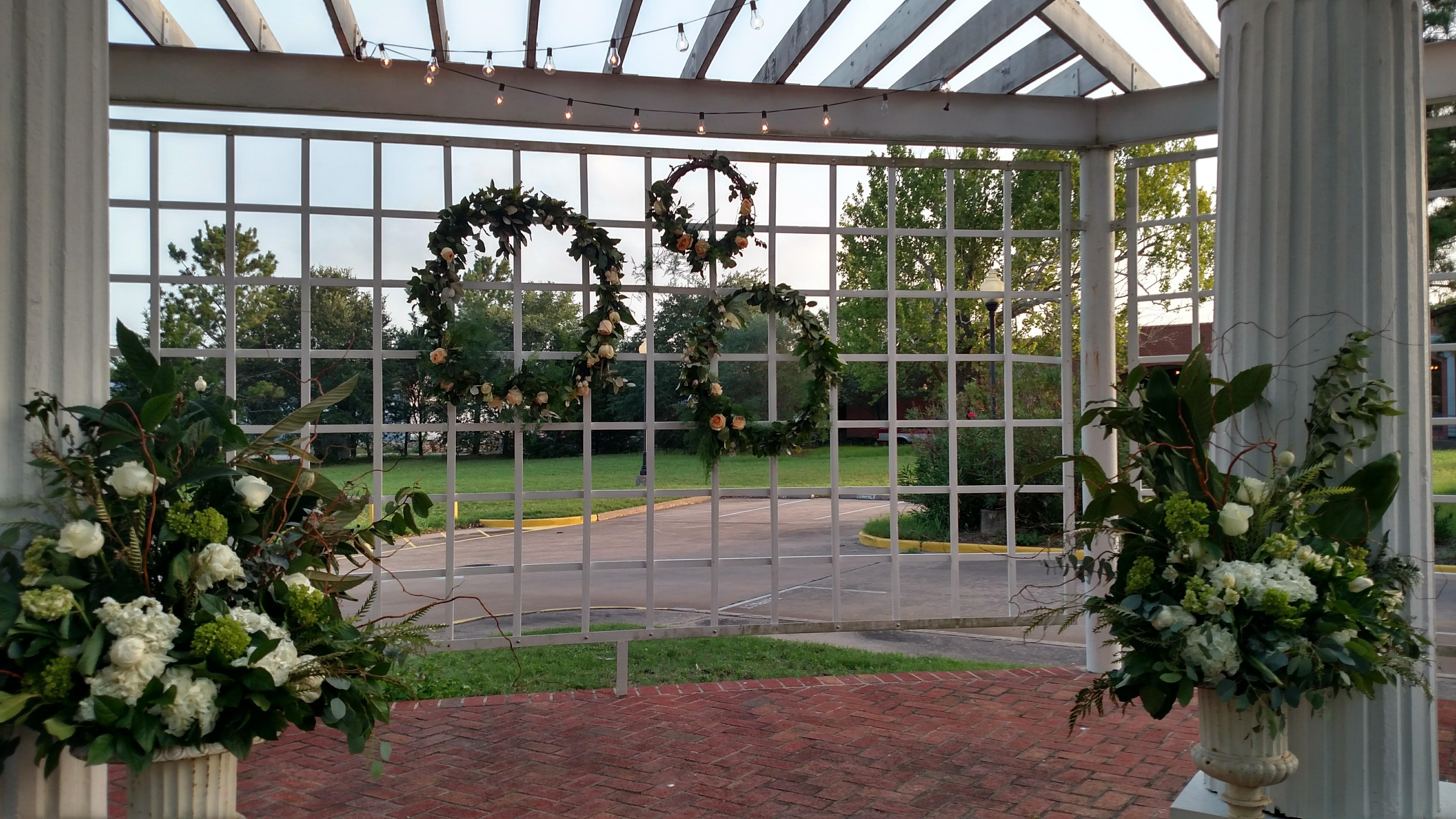 Our garden is perfect for your outdoor ceremony, overflow for your reception or your rehearsal dinner. The New Orleans metal work, adjacent veranda and year round greenery let you and your guests enjoy the outdoors in an elegant fashion. The arbor overlooks a wildflower prairie, highlighting Texas bluebonnets in the spring!