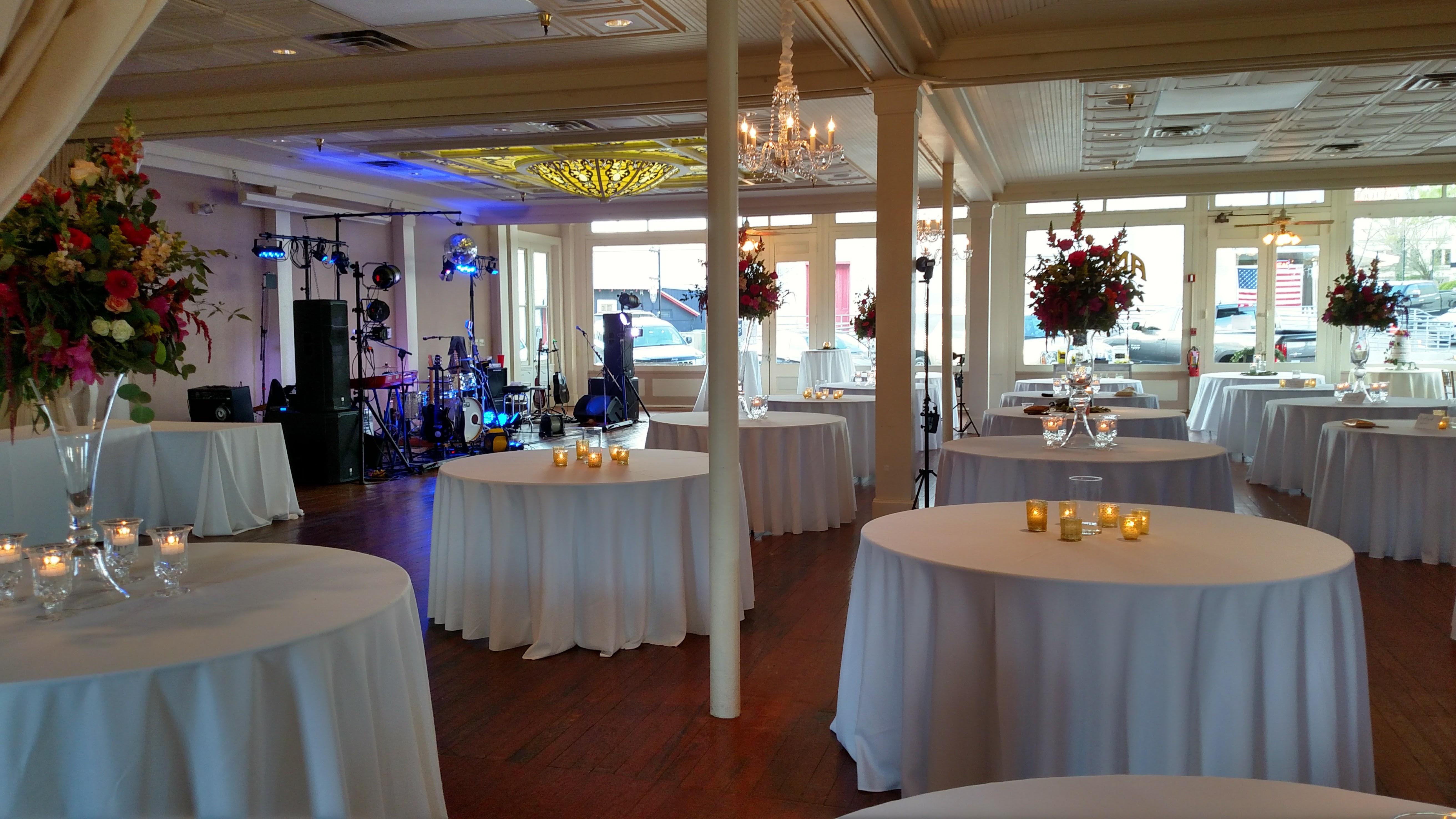 - access to our veranda and garden area - use of the adjacent catering prep kitchen - round and rectangular tables (number varies depending on package) - multiple lighting styles so you can control the lighting during your event - handicapped accessability - free public parking - wi-fi - some decor rentals available for additional fee