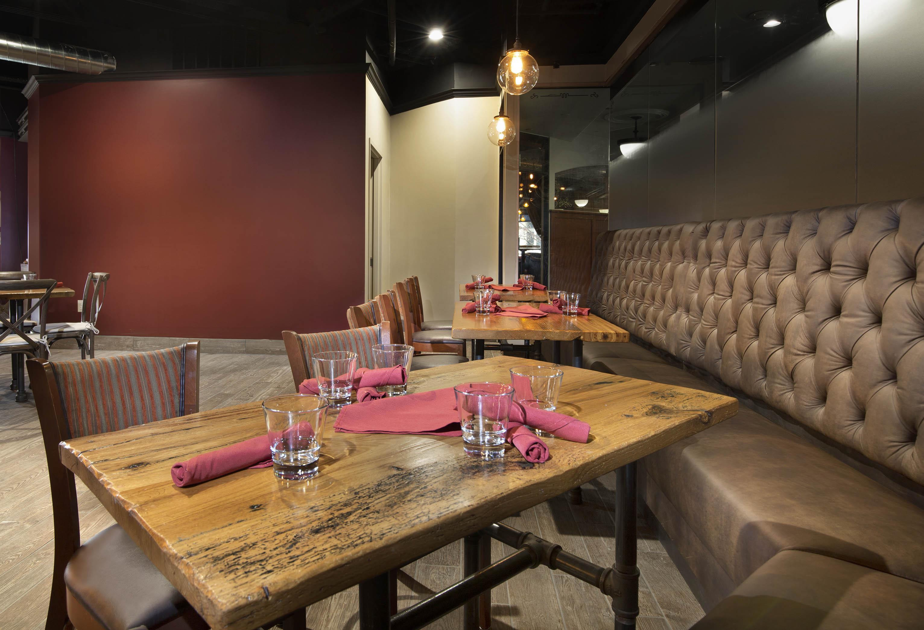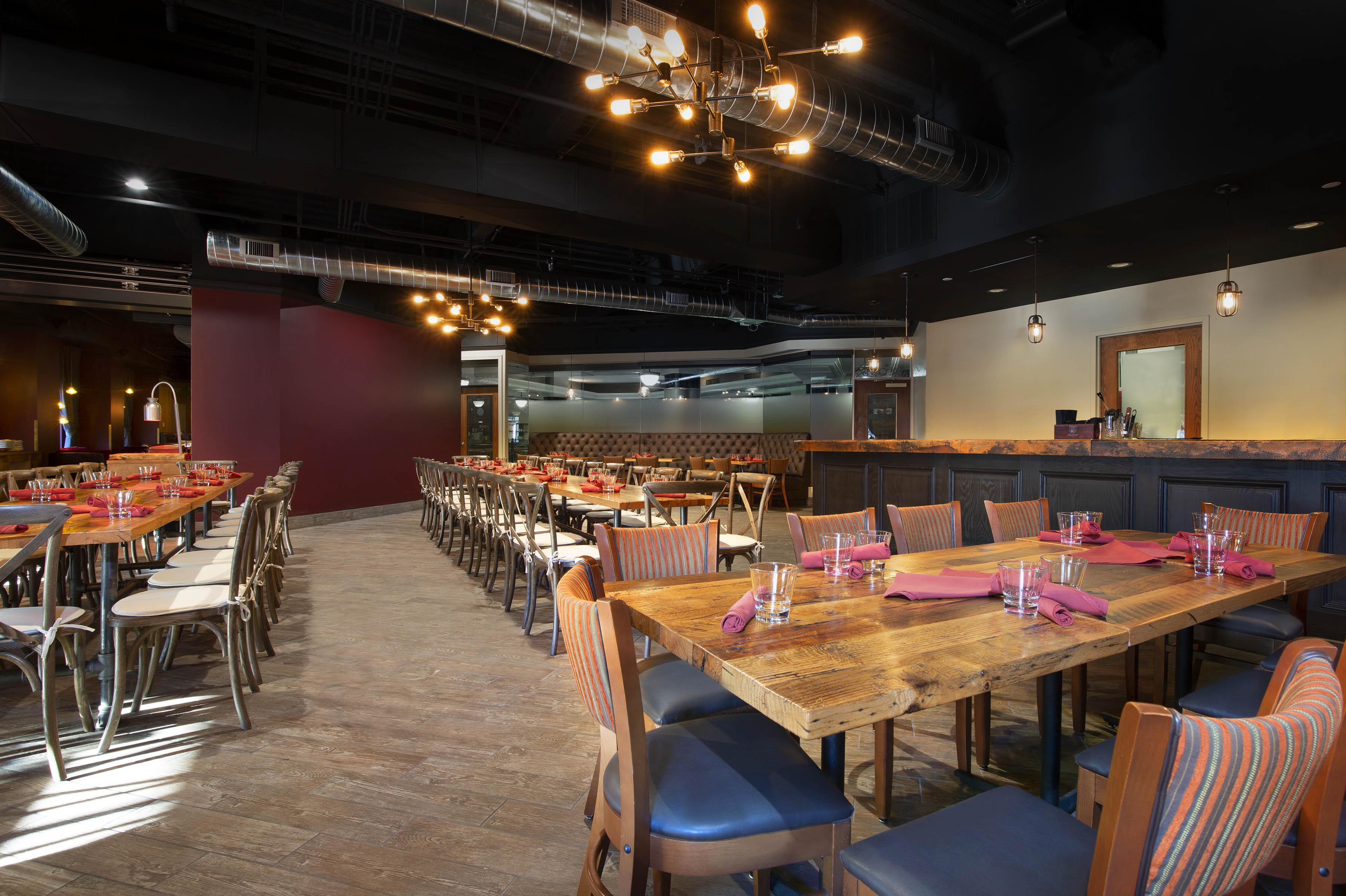 This space is 3,300sf combining our Observatory (cozy room) and Overlook (larger room). totally modular the room can be used in a multitude of ways depending on your needs. Contains two full service permanent bars, floor to ceiling windows, high ceilings, custom leather, repurposed hardwood tables and 100% private with additional space outside the room in the interior atrium.