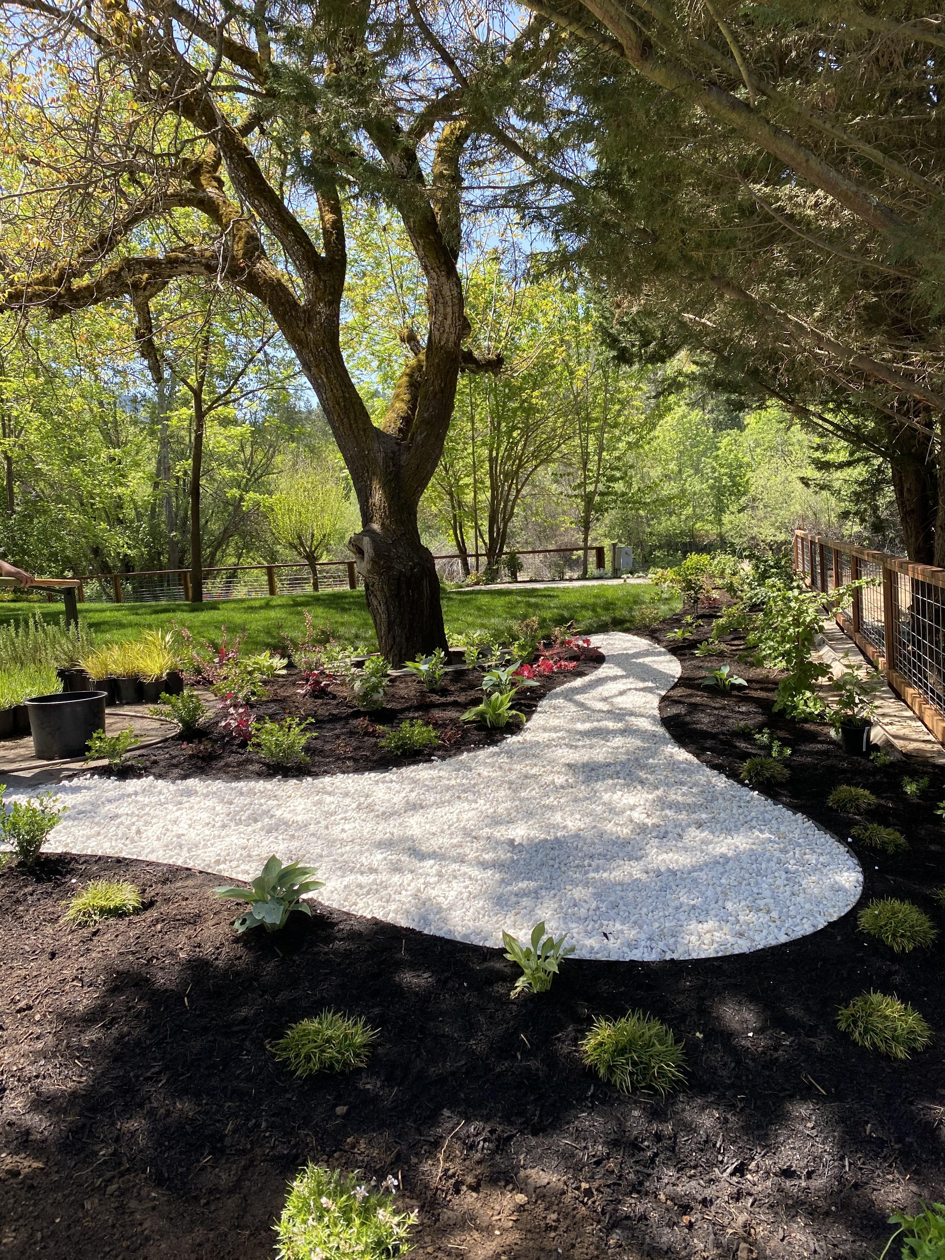 Paved ceremony area & aisle with arch (can be removed) Seating for 150 guests for ceremony under mature shade trees Love Lock Fence (Can be used as a Unity Ceremony) Four restrooms with real plumbing! (Handicap accessible restroom inside Ranch House) Seasonal flowering landscape Chandeliers in trees Café lights around perimeter Paved garden paths with cozy seating nooks
