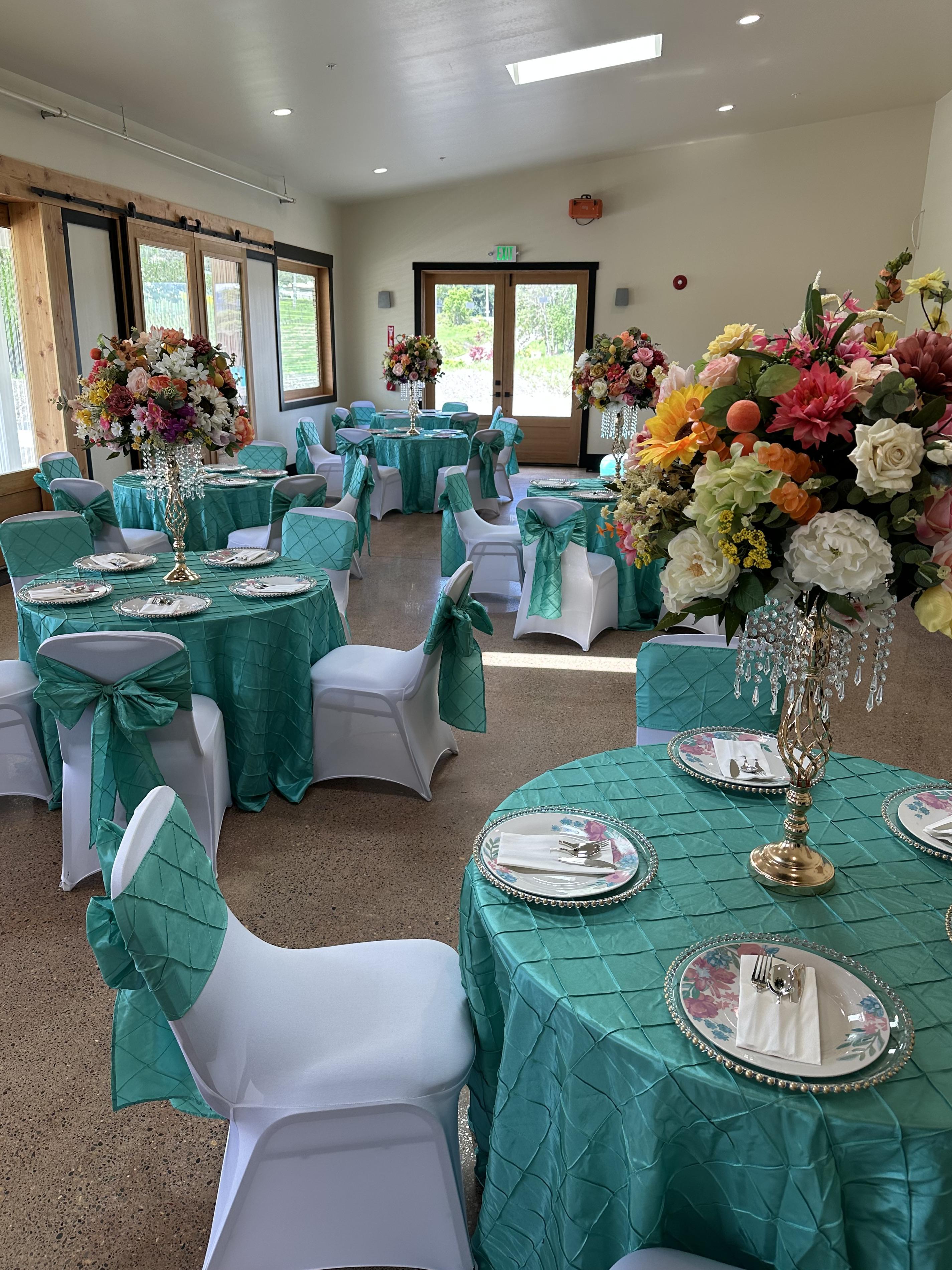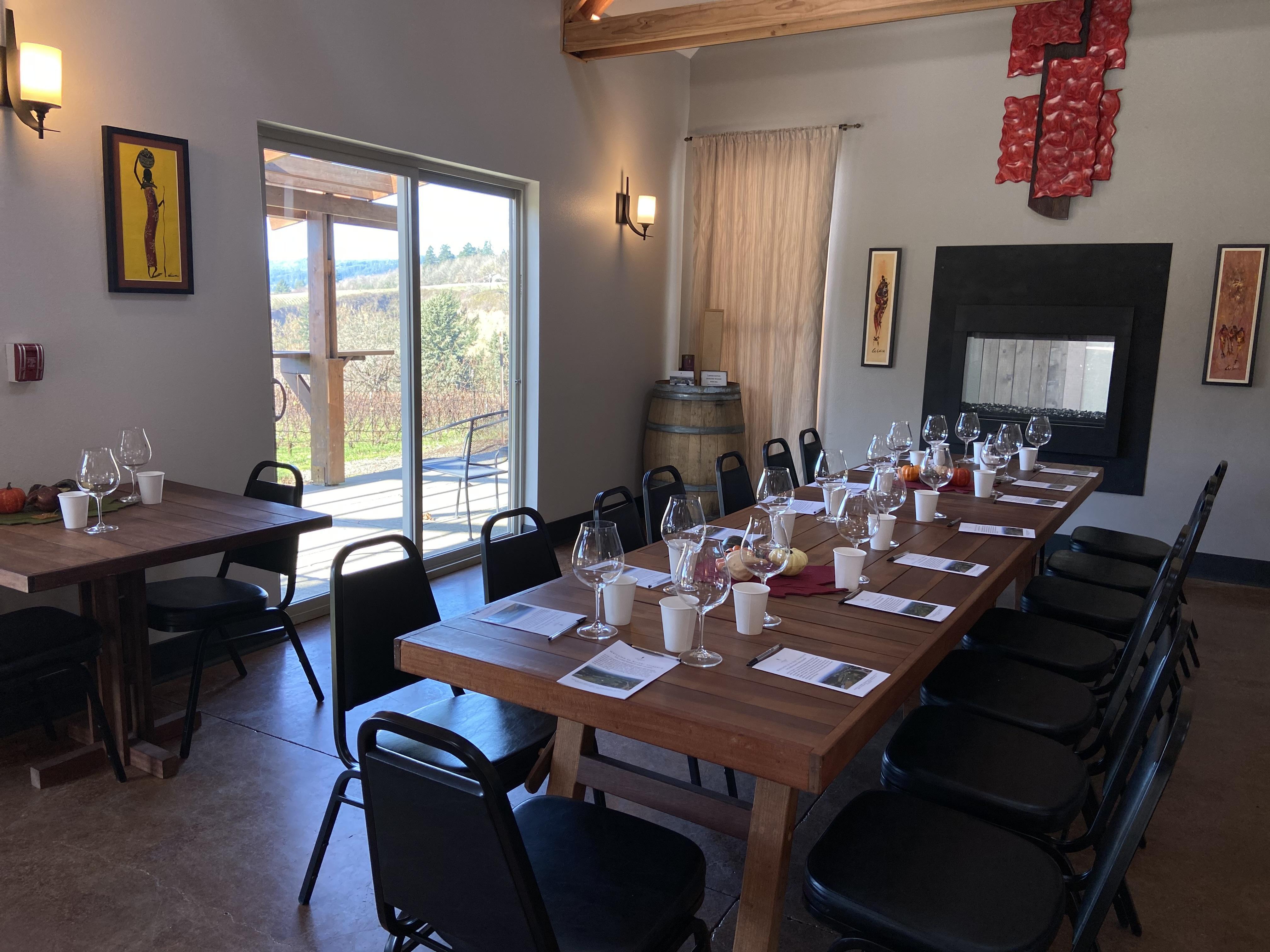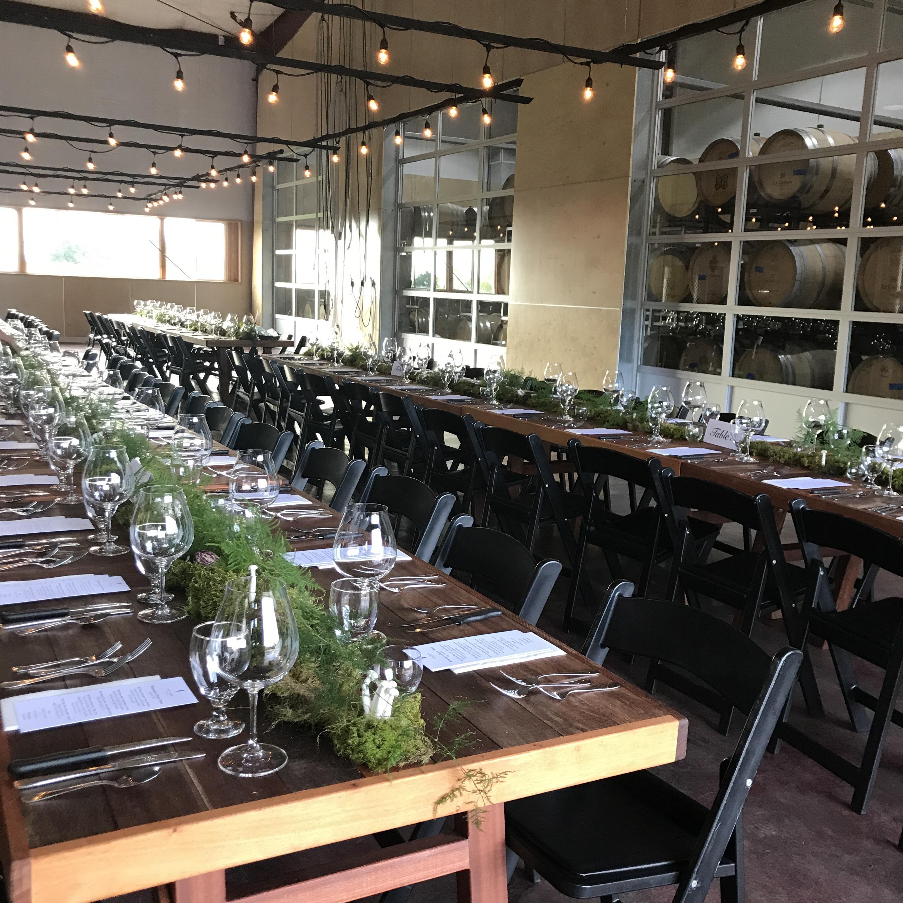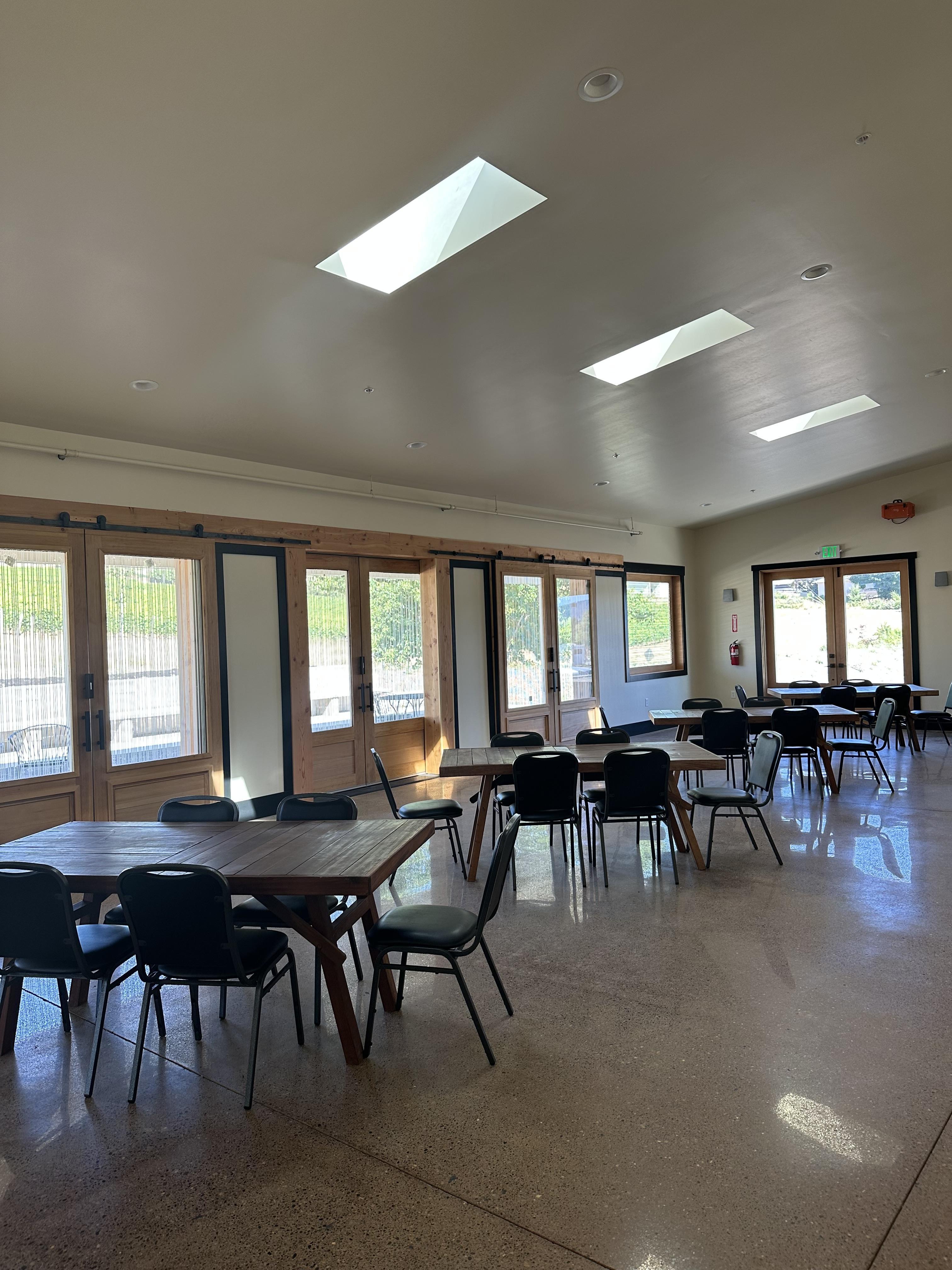 The Tasting Room, covered patio and deck feature gorgeous vineyard views. While the 14,000 sq. ft winery is a unique location for larger events.