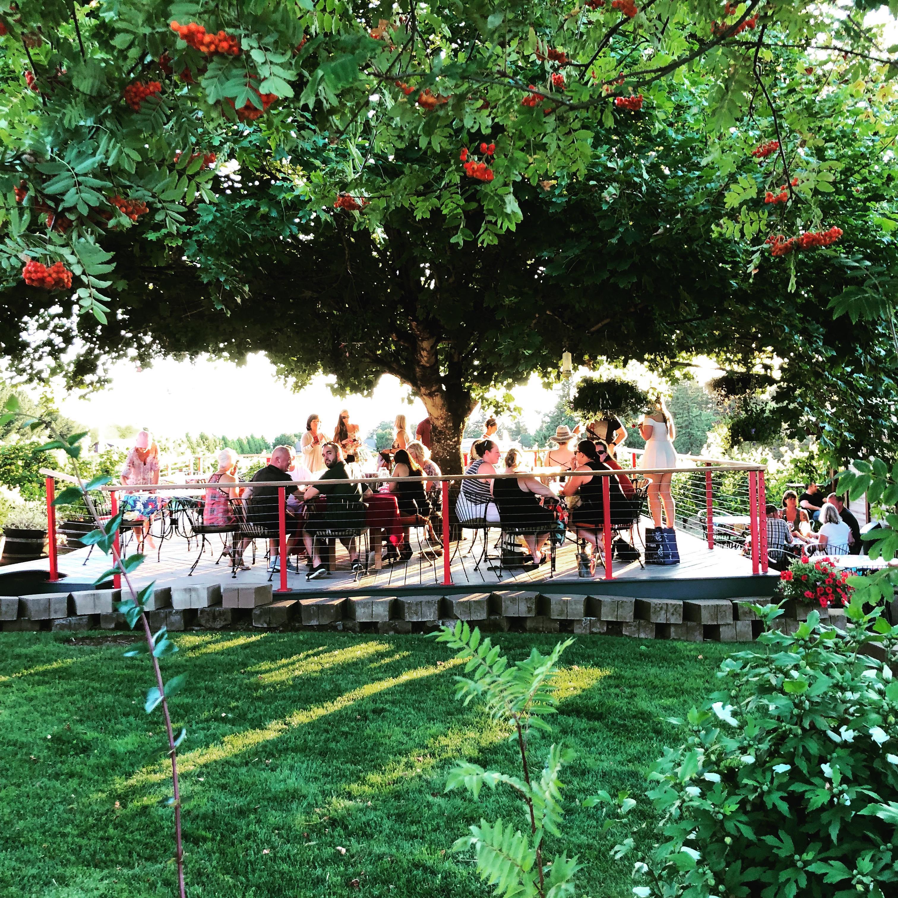 Archer Vineyard has three event spaces to choose from: Our vineyard tasting room and winery in Newberg, tasting room in Dundee, and clubhouse at Dundee Hills Resort. All three venues offer options for weddings of all sizes - from micro-weddings to weddings in the winery for 150 guests. The Vineyard Tasting Room and Winery in Newberg is located beside our 6.5 acre vineyard and boasts beautiful vineyard, valley and mountain views. You may use the tasting room, patio and deck for events up to 75 guests or add the winery to your rental and host up to 150 guests. Our Dundee Tasting Room was opened in 2023 and features an open, modern space for ceremonies and receptions as well as a lower level bar for more intimate gatherings. There are three patios too where you can enjoy vineyard views. The Clubhouse at Dundee Hills Resort offers vineyard views from its banquet hall and patios. Accommodations are also available as we have private cottages, Airstreams and RV spaces available for rent.