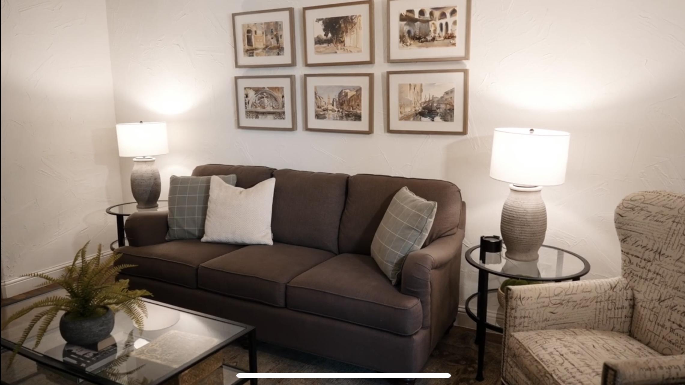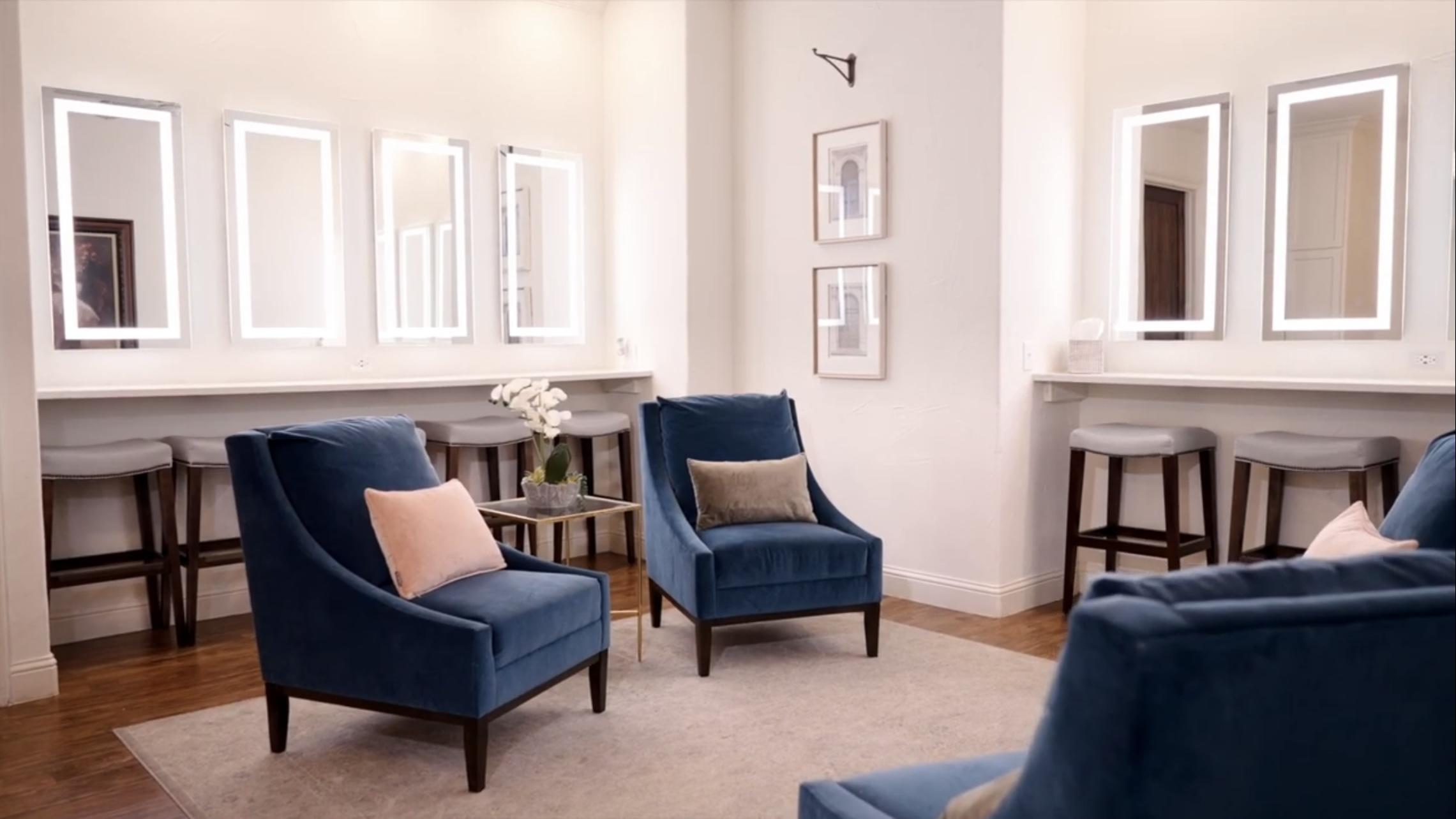 Our primary suite includes natural light, vanity seating, a large floor length mirror, and private restroom. Our secondary suite includes hardwood floors, a kitchenette/mini bar, lounge seating, flat screen, gaming system, and a private restroom.