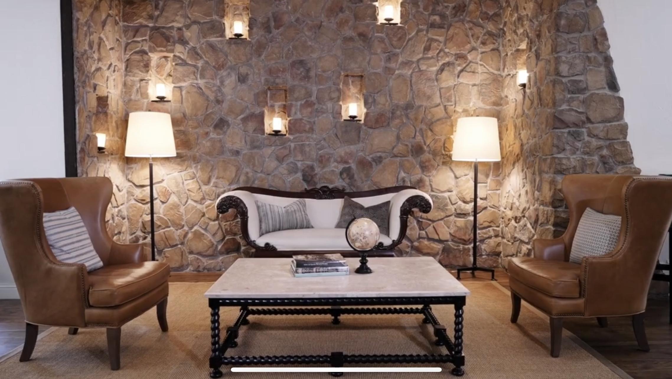 Our grand ballroom is the ideal space for your dream reception. Aristide | Mansfield’s 16 arches in the second story of the ballroom can provide colored lighting that will complement and set the mood for your event. The ballroom has four large 6-foot-high chandeliers that are quintessential Tuscan. The wooden beams in the ballroom complement the floor detail and tie the room together. Throughout the Venue, we have several gorgeous photo opportunities from our classic stone wall, cocktail area, outdoor fireplace, and beautiful wooden doors.