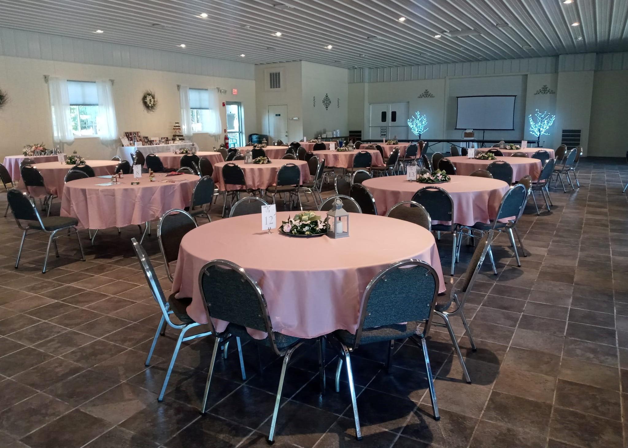 Our Banquet Hall is the perfect place for a formal wedding ceremony and reception. The hall encompasses 7,000 sq. ft. and has a 350-person maximum. It is an all-season country club type facility, heated and air-conditioned for your guests' comfort.