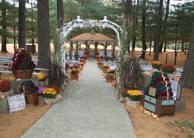 Our wedding services and settings are very different from the typical wedding and reception facility. At Arrowhead Acres, you choose the setting -- traditional or rustic. We offer the formal setting of our beautiful Banquet Room, and the informal setting of our gorgeous Chapel-In-The-Pines, Rustic Country Barn Area, and Park Pavilion. Although many of the wedding ceremonies and receptions held at Arrowhead Acres are traditional, we welcome non-traditional wedding themes.