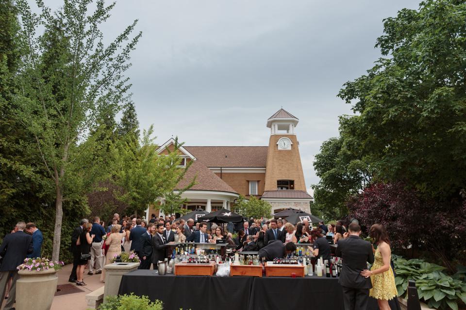 Rent the outdoor patio for cocktail hour and enjoy drinks and views of the golf course before introductions.