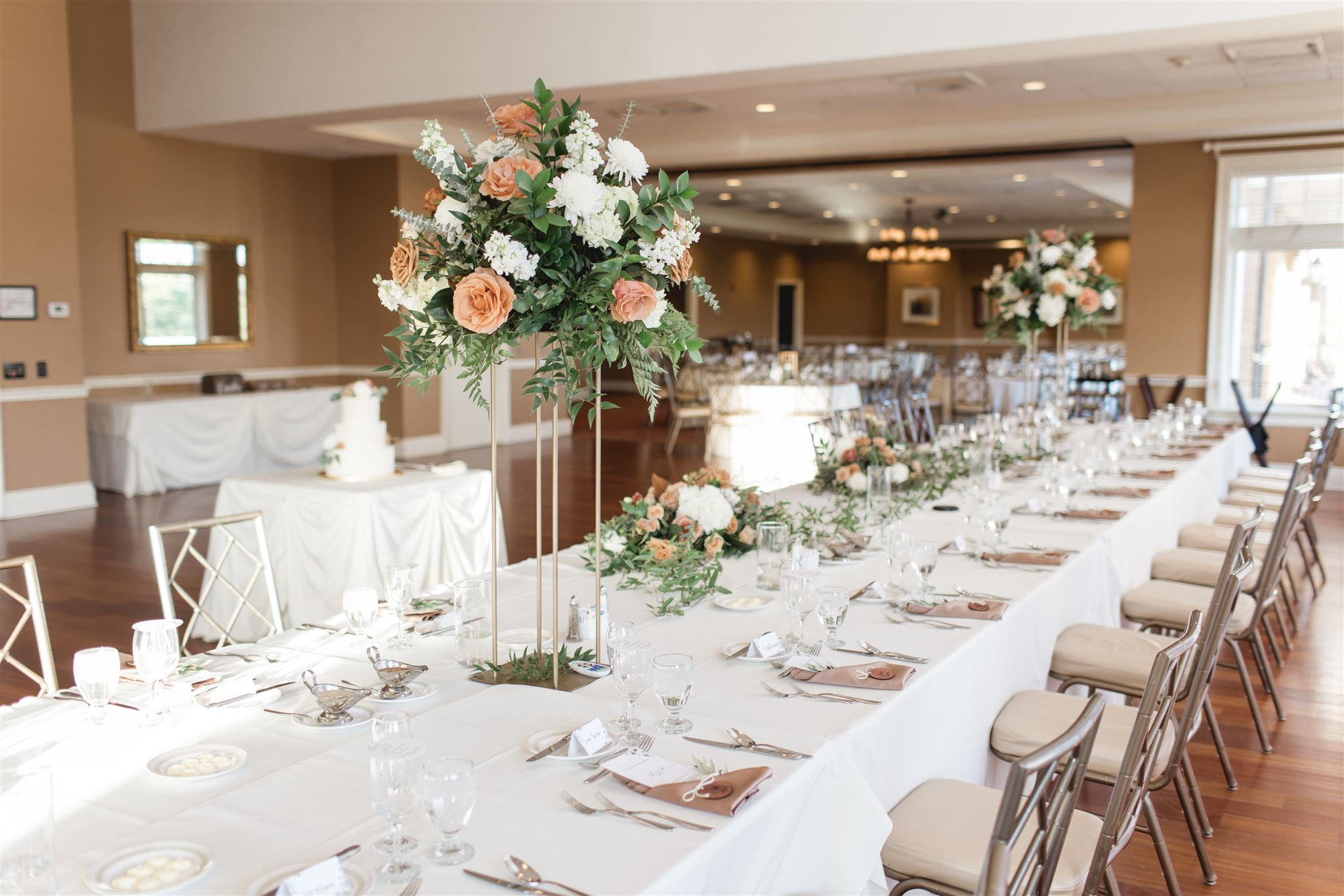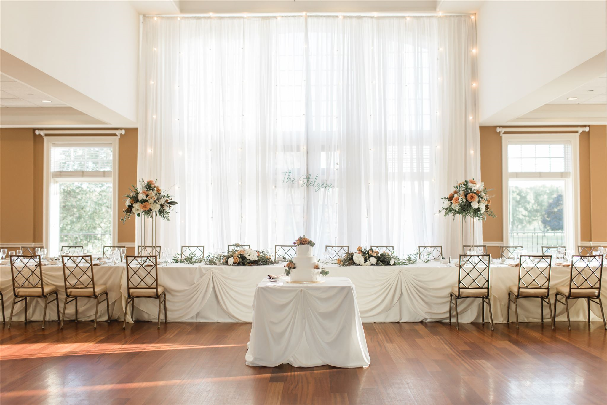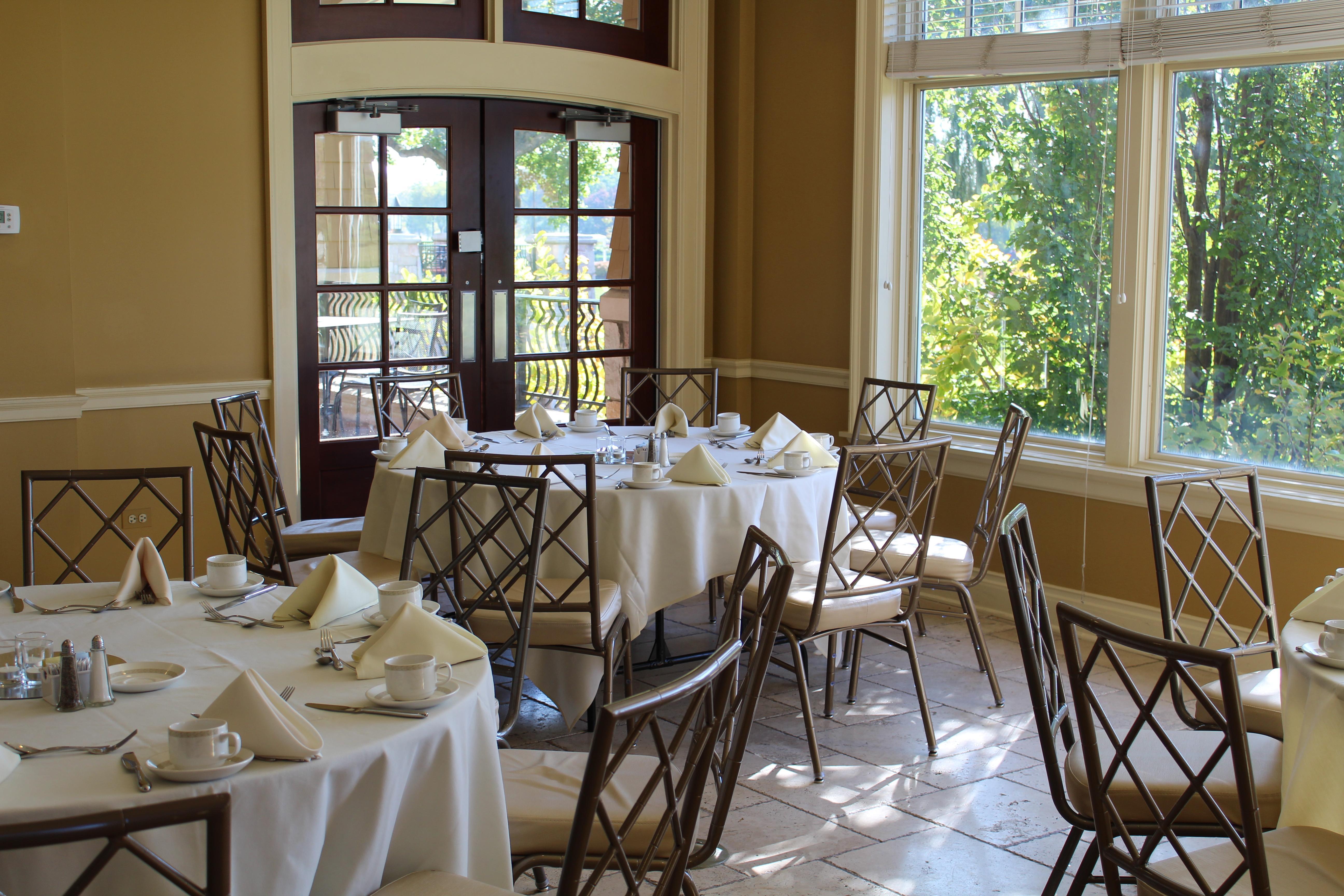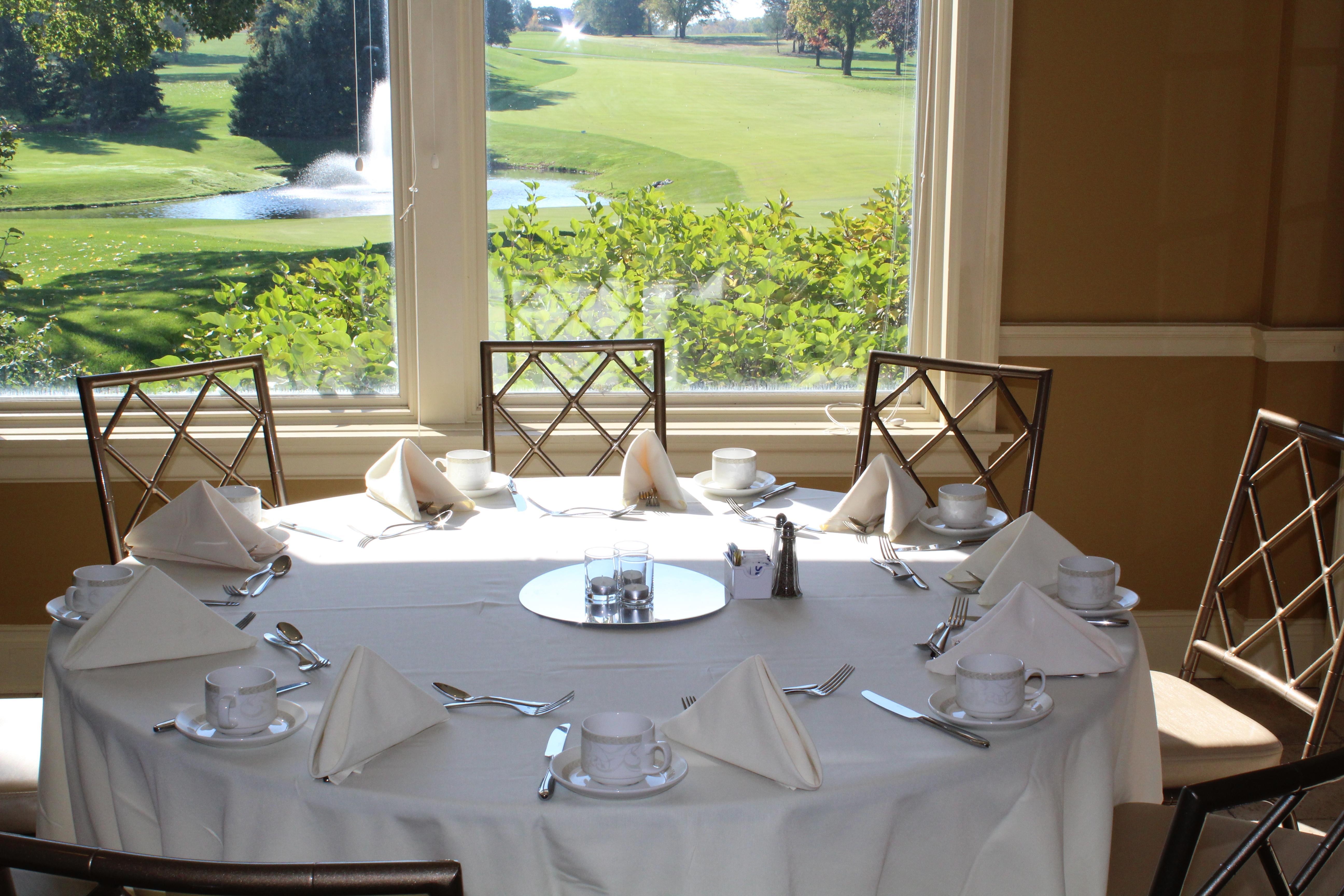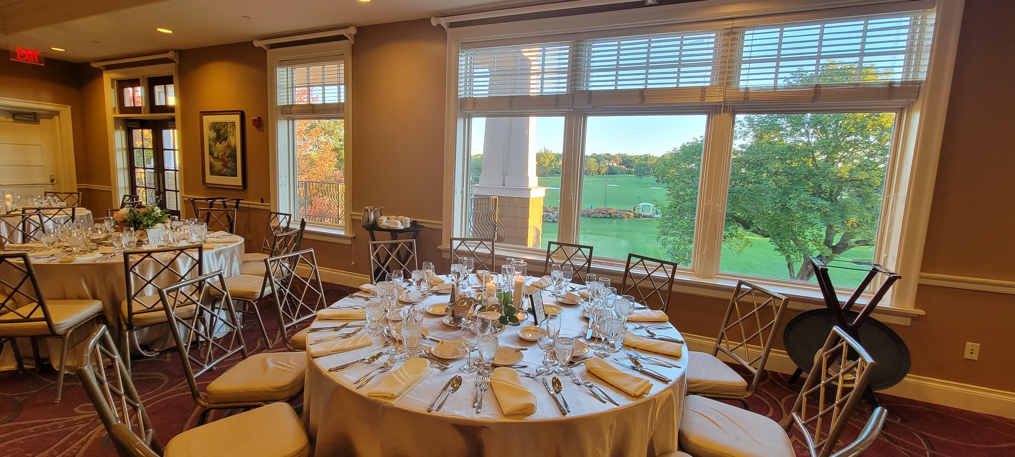 A beautiful ballroom overlooking meticulously kept golf greens with three private balconies.
