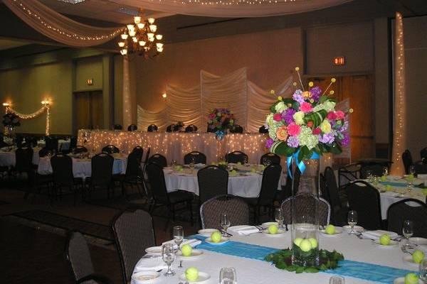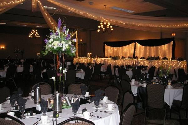 Arrowwood Resort and Conference Center offers both indoor and outdoor venues to host your wedding celebration. You may use the beautiful banquet hall which can accommodate up to 400 guests for a formal dining reception. The banquet hall features organza lighting and space for a dance floor. The lawn and patio areas overlook the picturesque Lake Darling and serve as idyllic areas for your ceremony and cocktail hour. All venue spaces can be custom-decorated to suit your wedding style. Arrowwood Resort and Conference Center have guest rooms, townhomes, and cottages to host all of your wedding guests. The happy couple receives a complimentary night in one of the suites as part of their stay. All guests have access to the spa and Atikwa Golf Course.