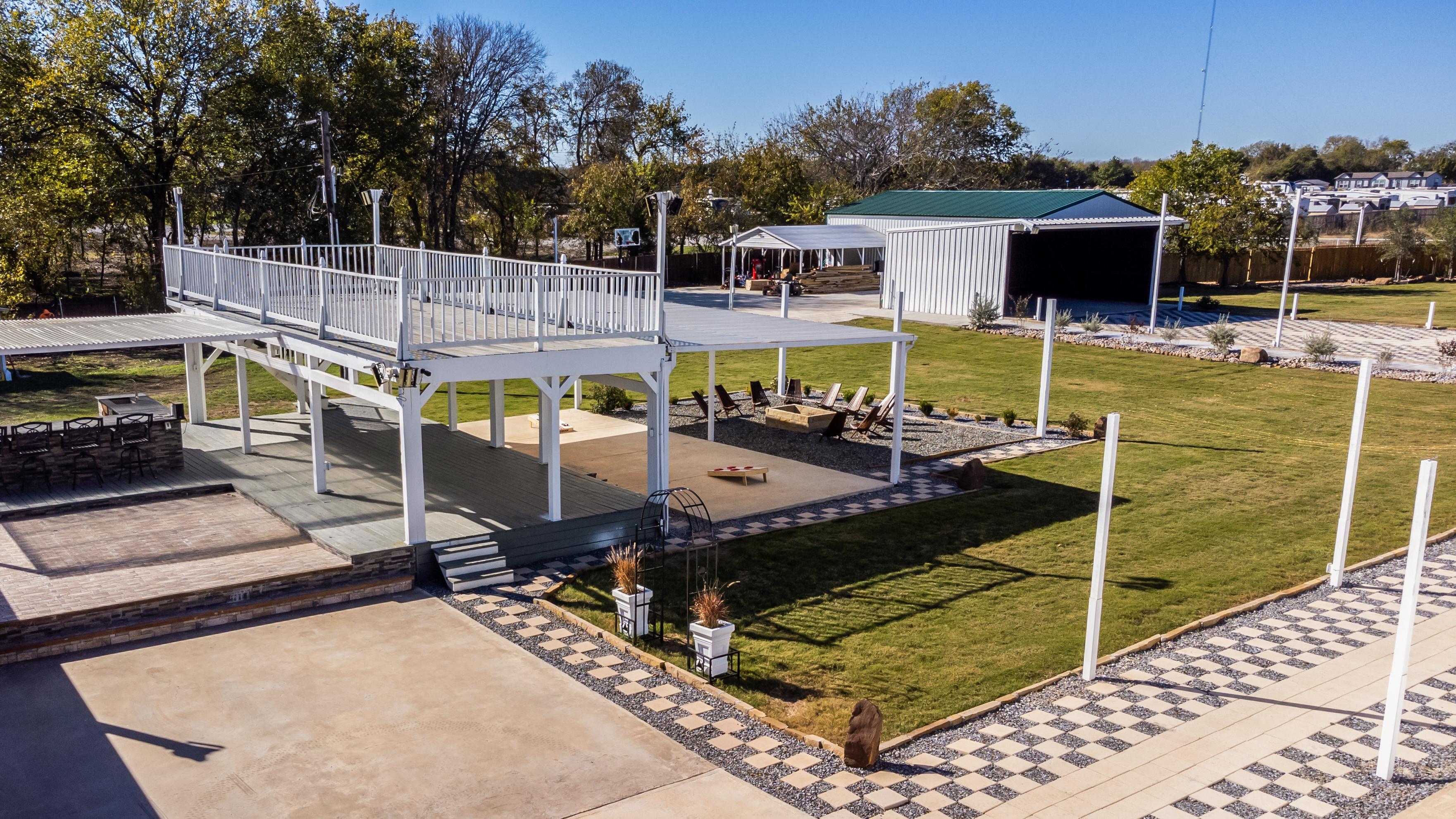 Plenty of parking Multiple outdoor space options Meticulously manicured and maintained lawn, flower beds, and trees. Multi-use covered outdoor space with grill/tandoor and plenty of counter space for serving food. Deck with upper level overlooking the venue Custom stone fire pit with plenty of seating space Covered outdoor space with beautiful stone paved pathway Large open areas with beautiful lawns to host weddings, anniversaries, banquets, company events, etc. Multiple pathway and exterior lighting options