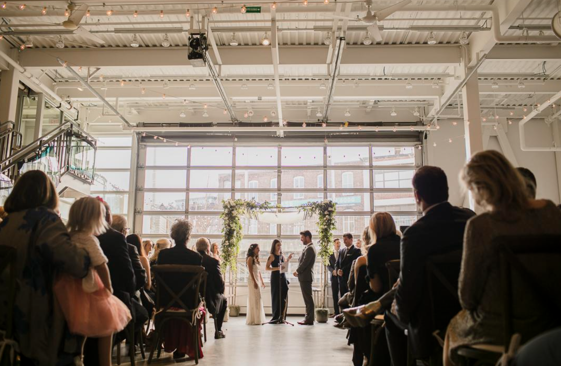 We live in Boston and wanted a local venue that showed off the best of Boston. AFH is an amazing non-profit gallery that works with local teenagers to create art. LARGE, industrial space with concrete floors and a large garage door with a private courtyard/patio. The venue is in South Boston, blocks away from the Broadway T station with a nearby parking garage. Easy mass transit and driving location right off of 93 and 90.