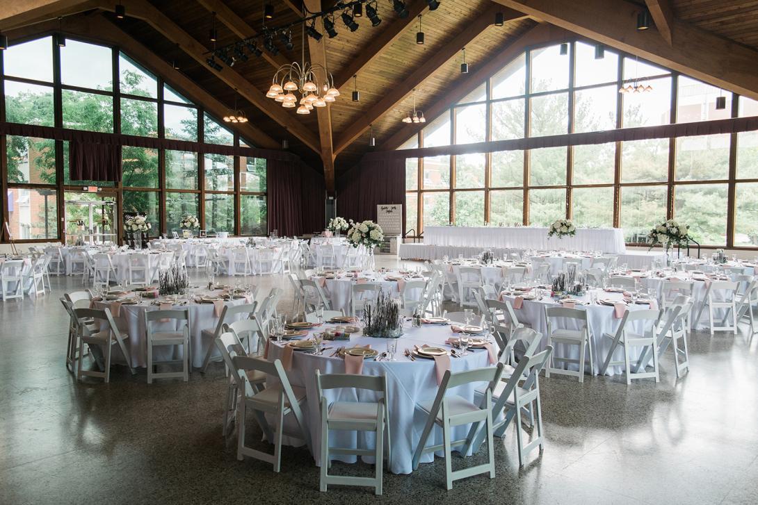 The upper level of Ashland University’s John C. Myers Convocation Center opens up to create the largest and most spacious room available to you. Entirely customizable, the space can fit a large stage, open dance floor, multiple buffet stations and more plus accommodating 1,000 guests in reception-style seating. For large dinners, professional conferences, camps, trade shows and other high-activity events, this is the best venue.