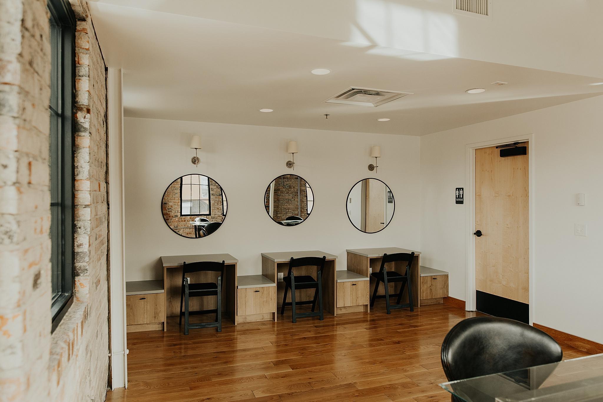 Get Ready in comfort with natural light, warm exposed brick, built-in vanities and more!