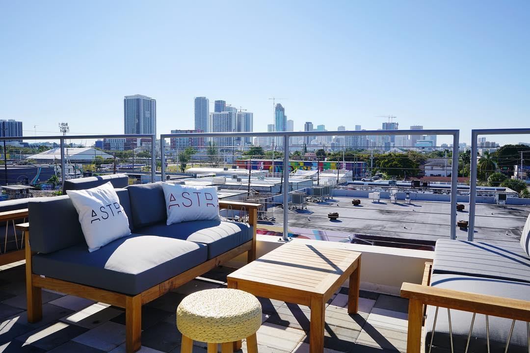 ASTRA is the ideal location to impress as you watch spectacular sunsets, sip on the finest wines and spirits and make new friends. Lounge on plush sofas as you enjoy music nightly from a host of international DJs while you take in the 360 degree views of Wynwood, Miami. Astra is the perfect place for corporate functions, weddings and much more⦠We can accommodate up to 350 guests. We do offer late dinner every night, bottomless Sunday brunch and bottle service every night