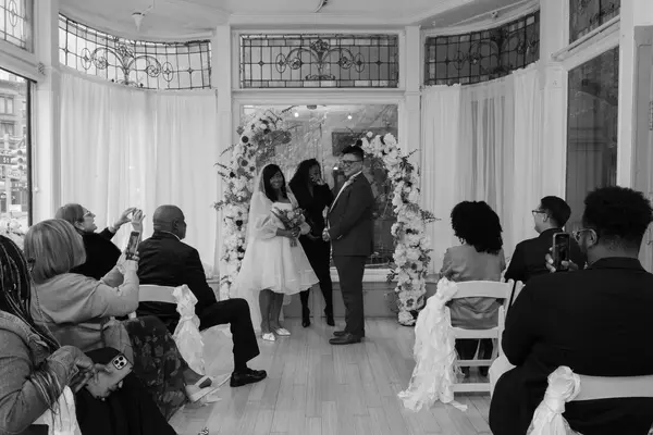 Our most streamlined option for couples who want to honor their love in a simple, intentional way. Whether you're eloping privately or gathering your closest circle, The Hour offers a minimalist, elevated setting to exchange vows — no fuss, no crowd, just the two of you (plus a few favorite humans, if you'd like). All taxes & fees waived. 3.5 hrs space, Officiant, Seating for up to 40 guests
