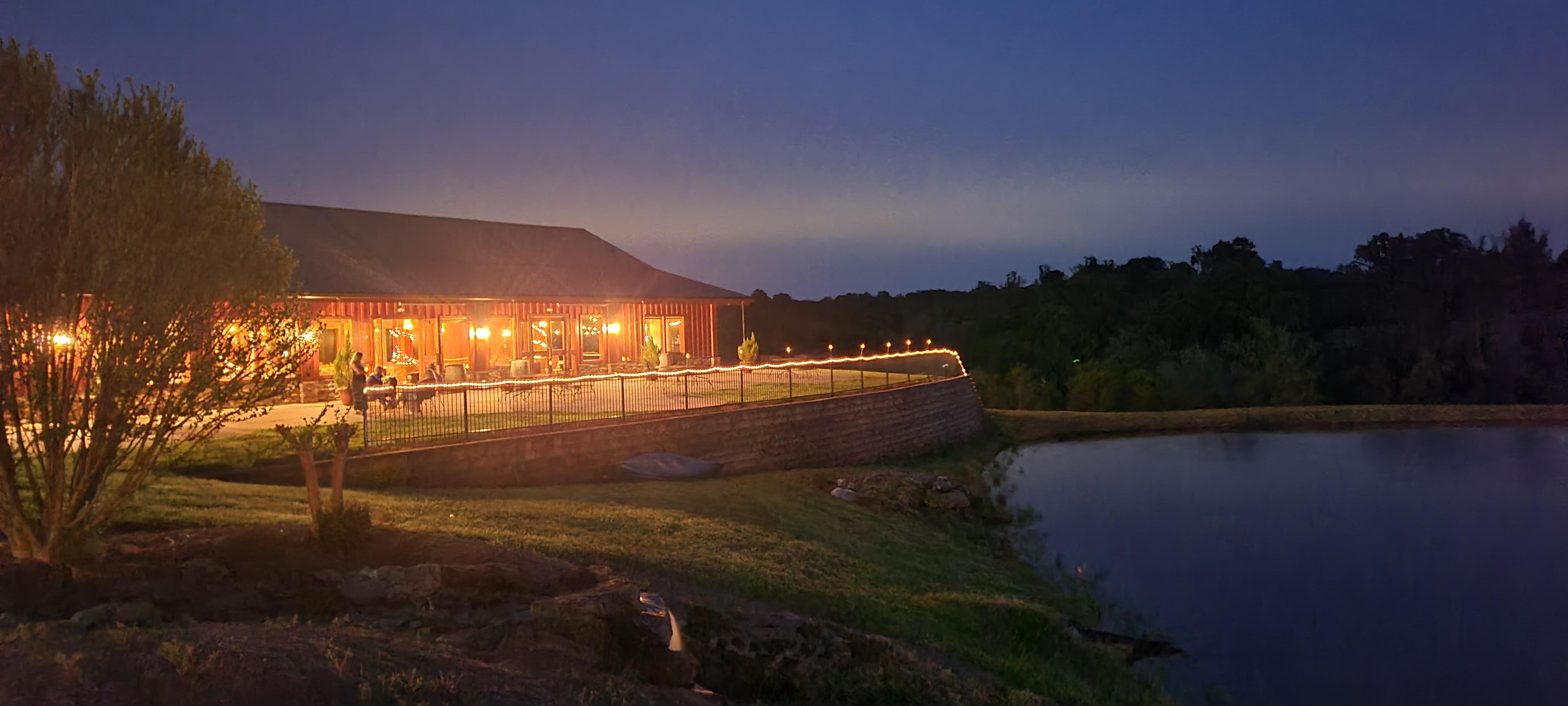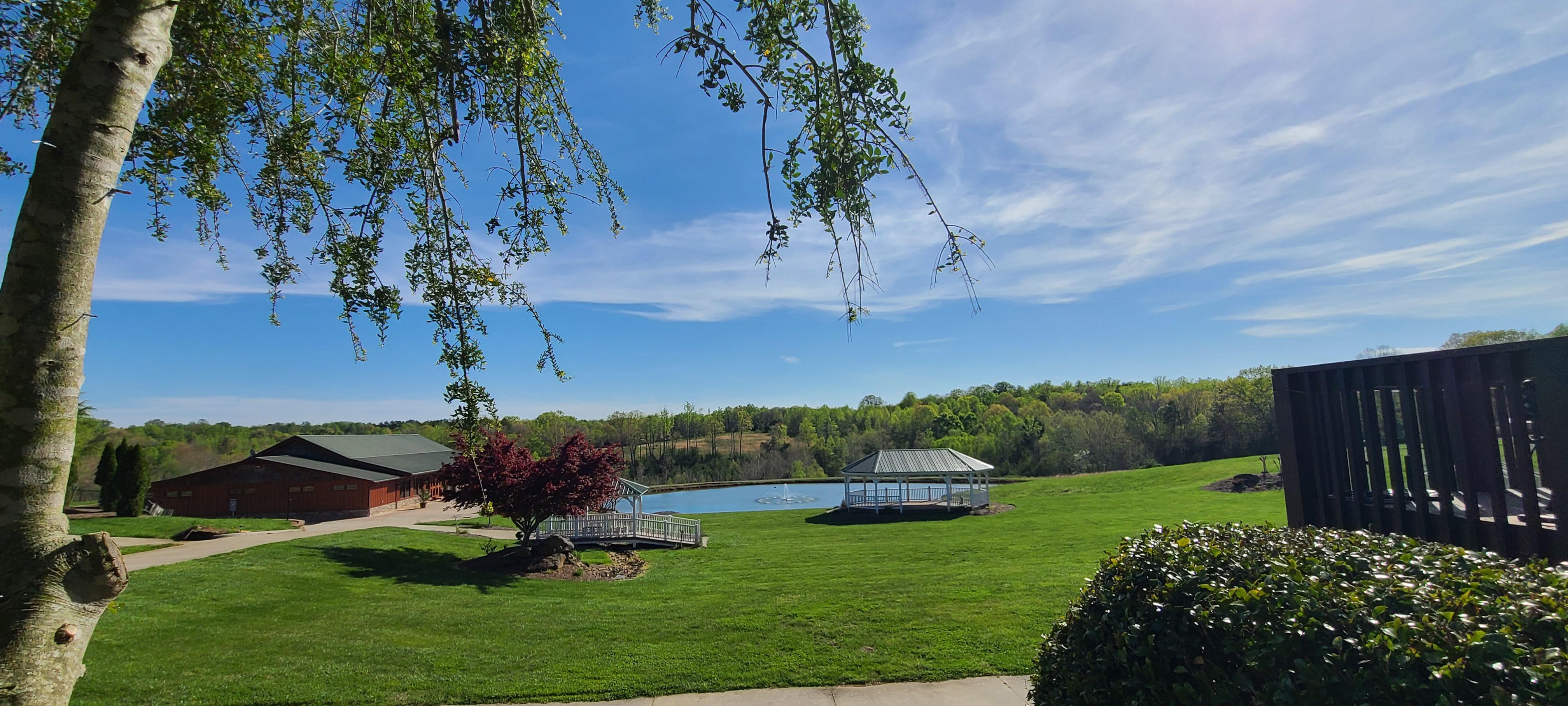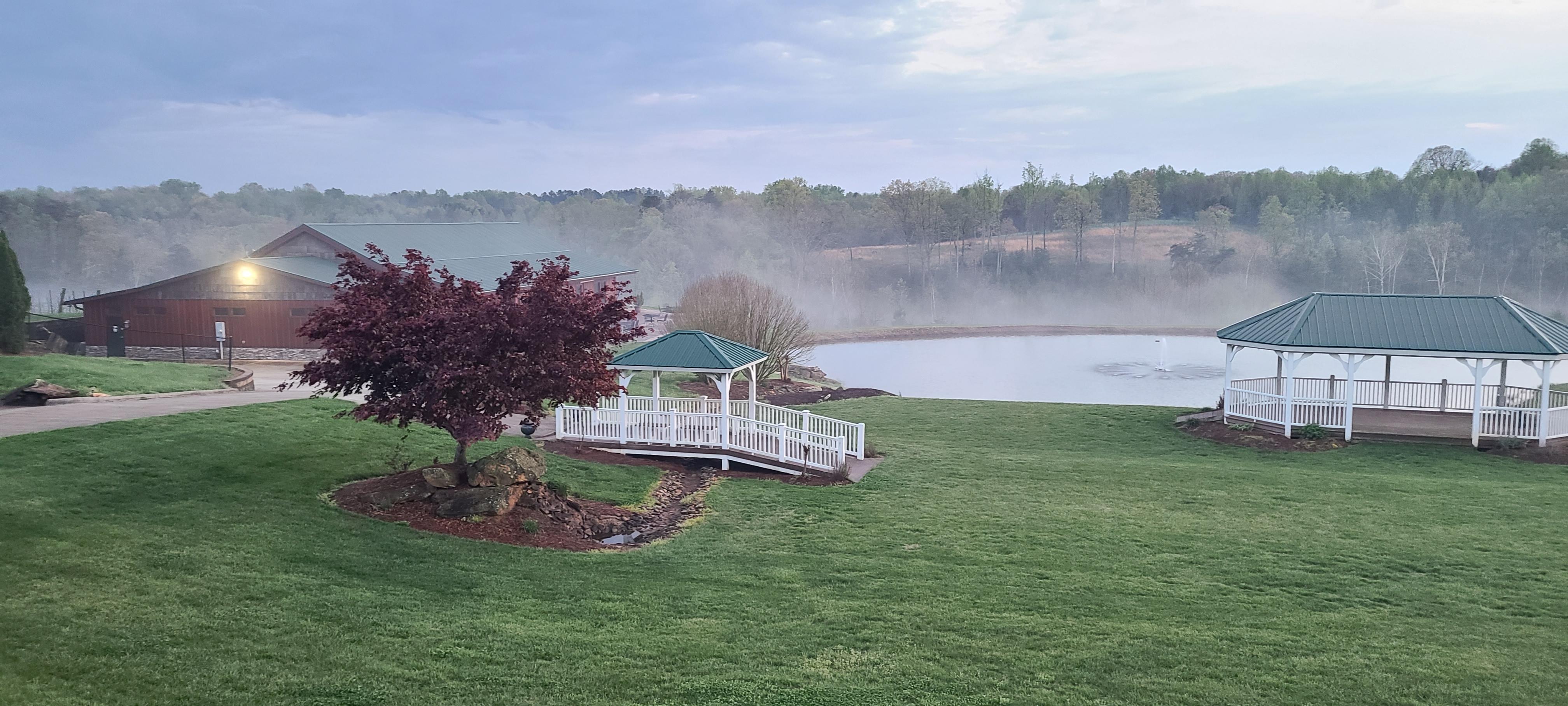 - Catering kitchen - Chandeliers - Dimmer switches for perfect lighting - Sliding doors for an indoor outdoor feel - High ceilings - Wood burning fireplace - Wrap around patio - Sweeping views of the vineyard, cabins, and pond