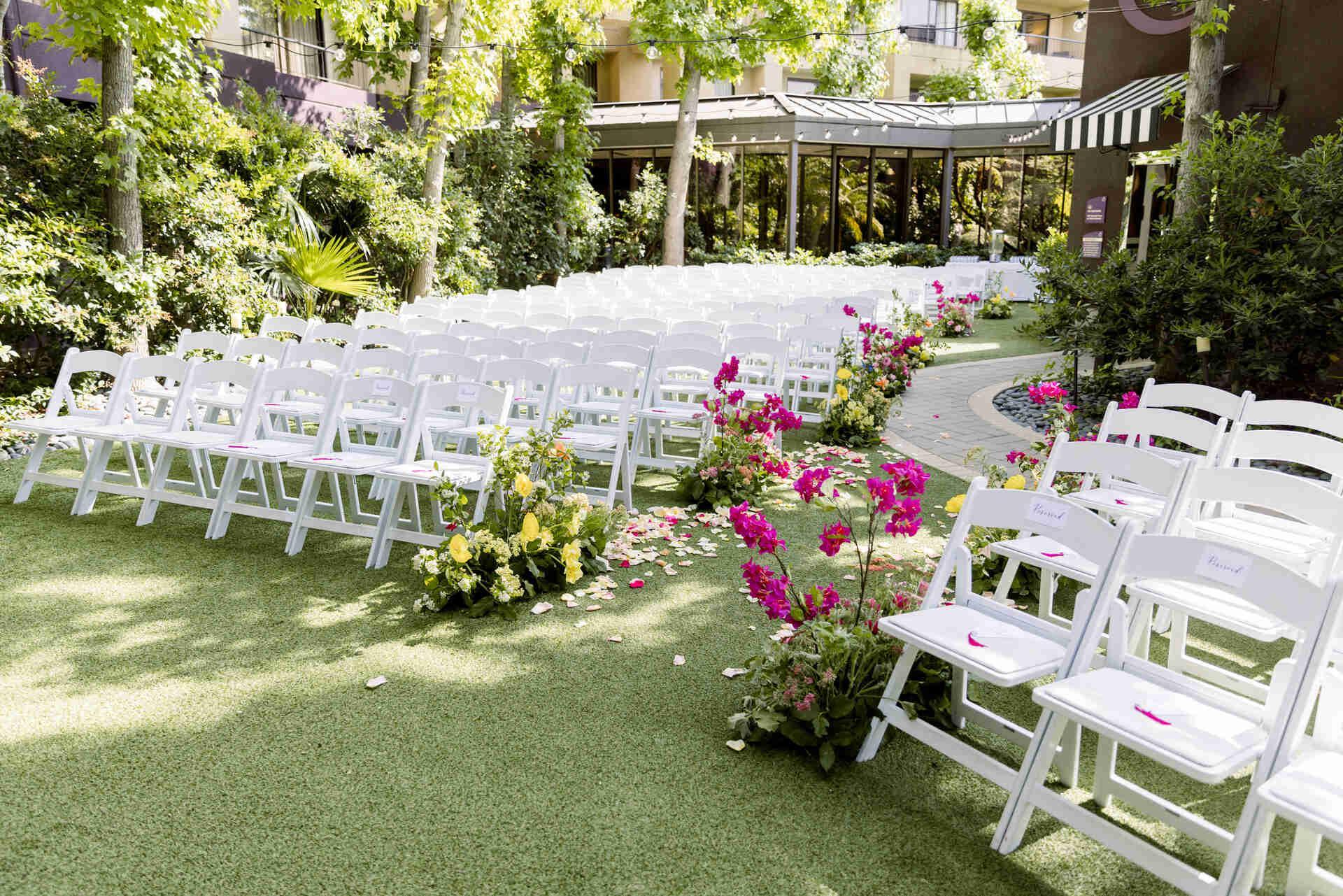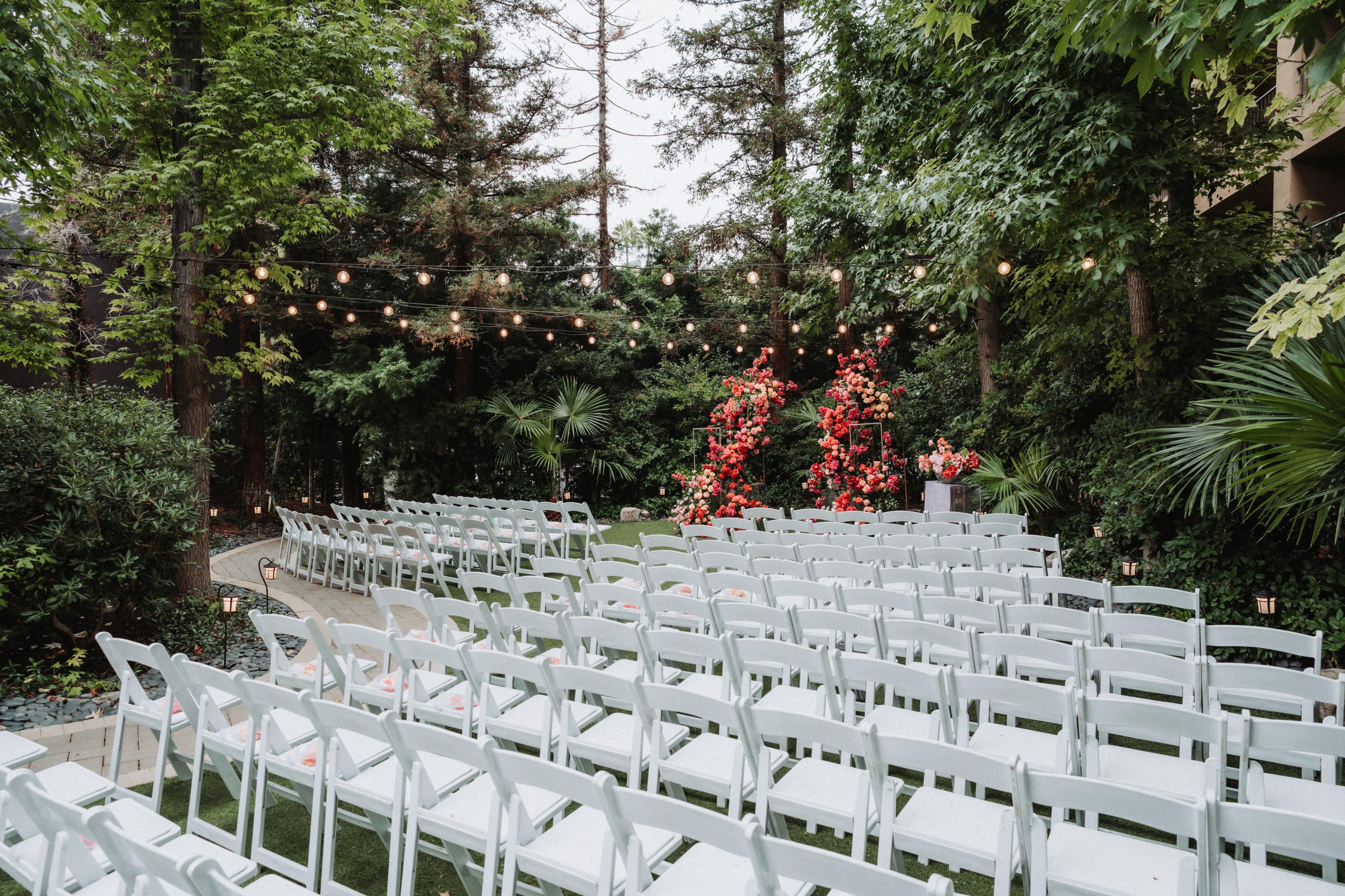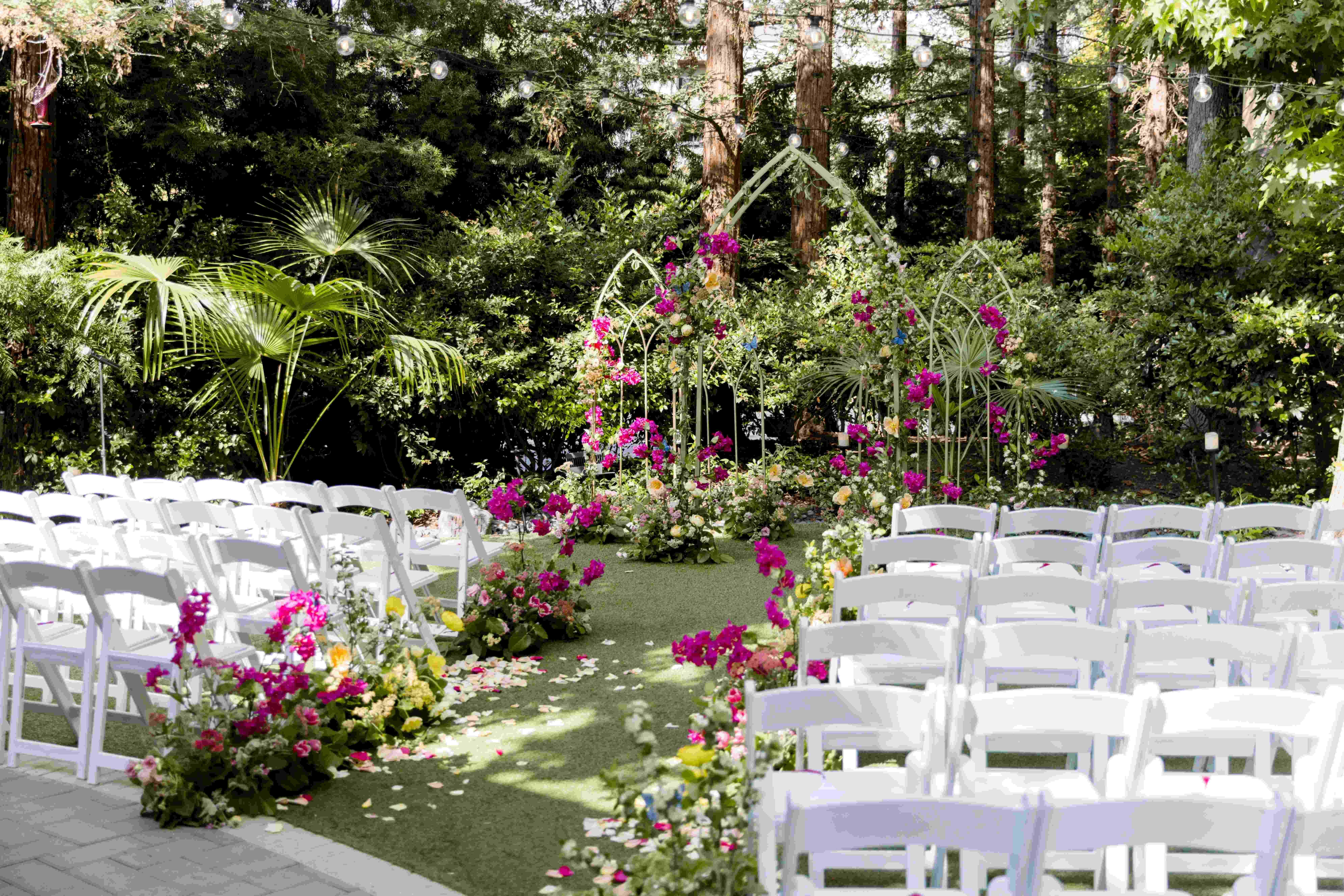 Nestled among towering trees and lush greenery, our Garden Retreat offers an intimate outdoor wedding venue.