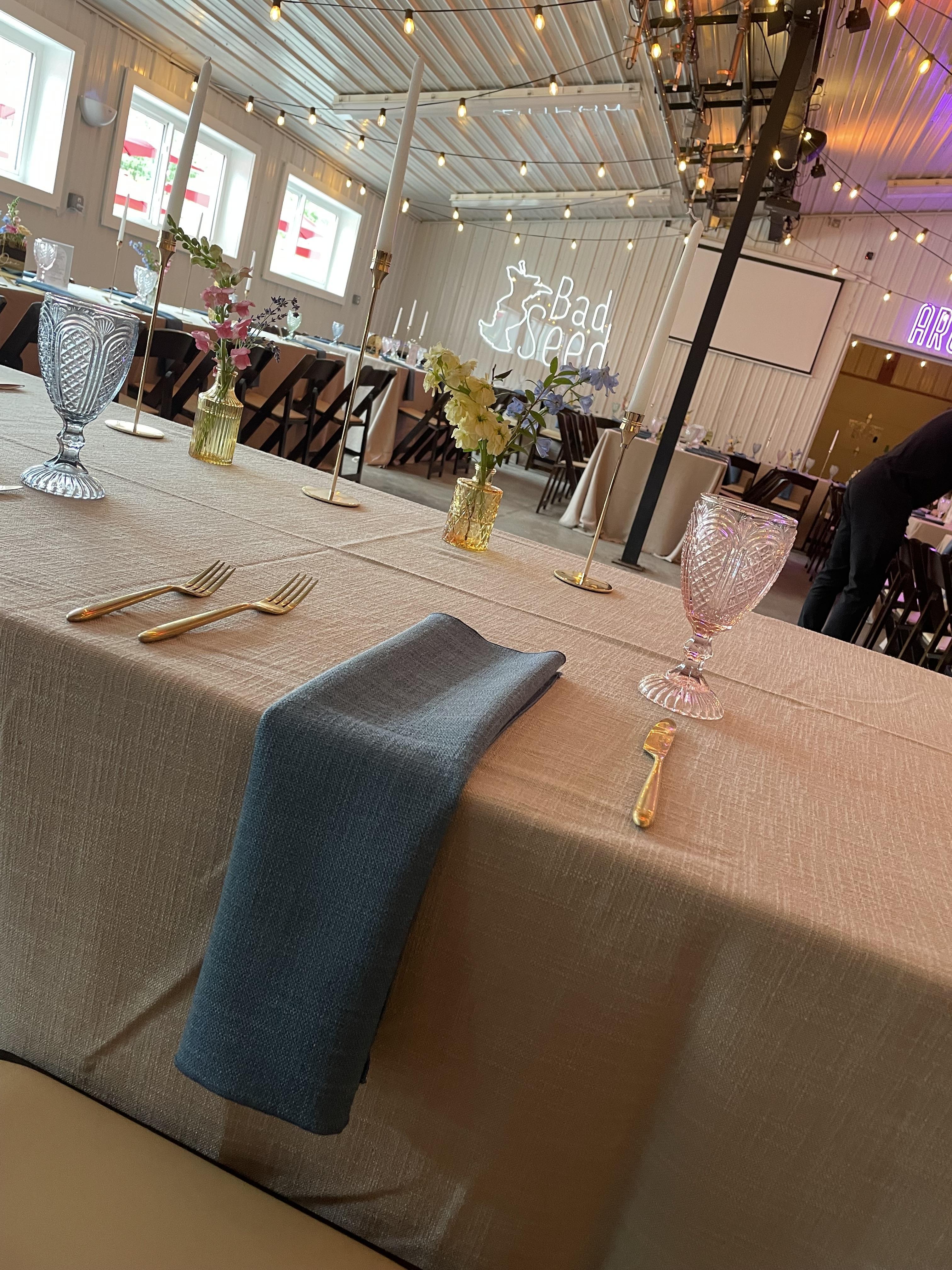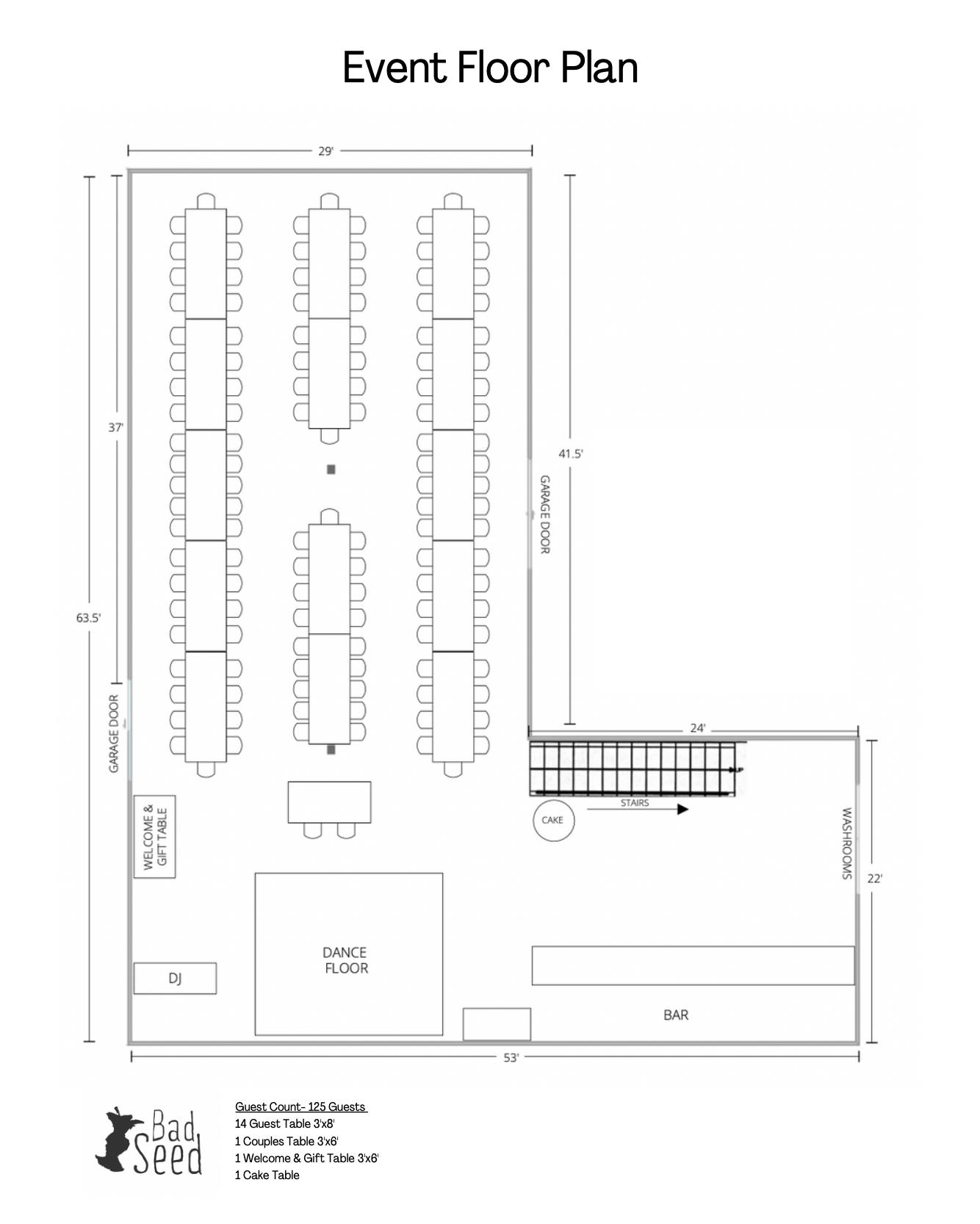 Spanning 5,000 sq ft, our Taproom elegantly marries rustic charm with modern design, providing ample room for up to 125 guests. Accentuated with event lighting, the taproom features an a generous dance floor, a dedicated bar section, a relaxing loft area and restroom facilities. This space serves as a blank canvas, ready to be tailored to your unique vision.