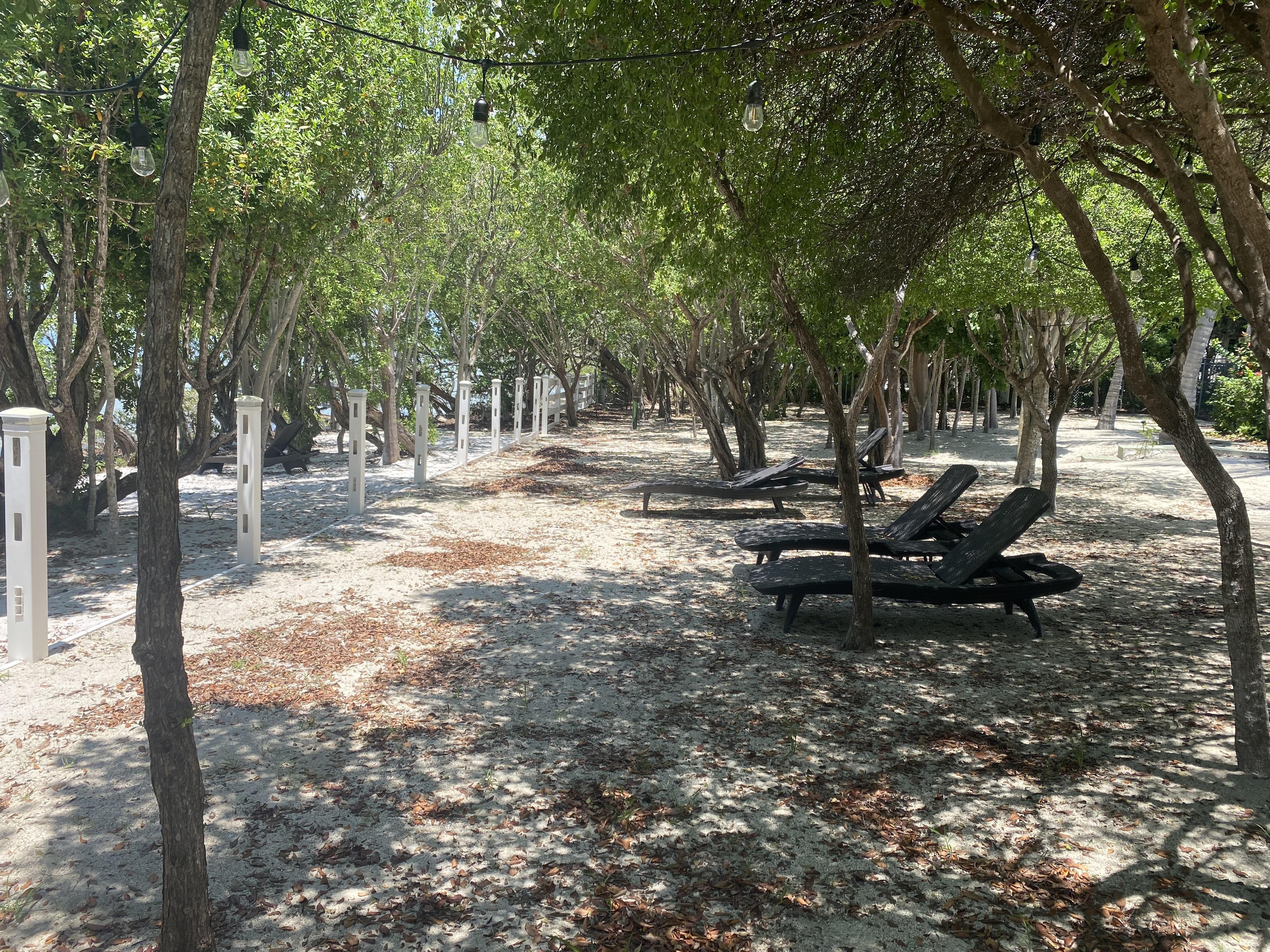 Over 200 feet of beachfront stretches the full width of the property including a large open area perfect for larger ceremonies, canopy covered seating/gathering areas, and a dock offering beautiful sunset views.