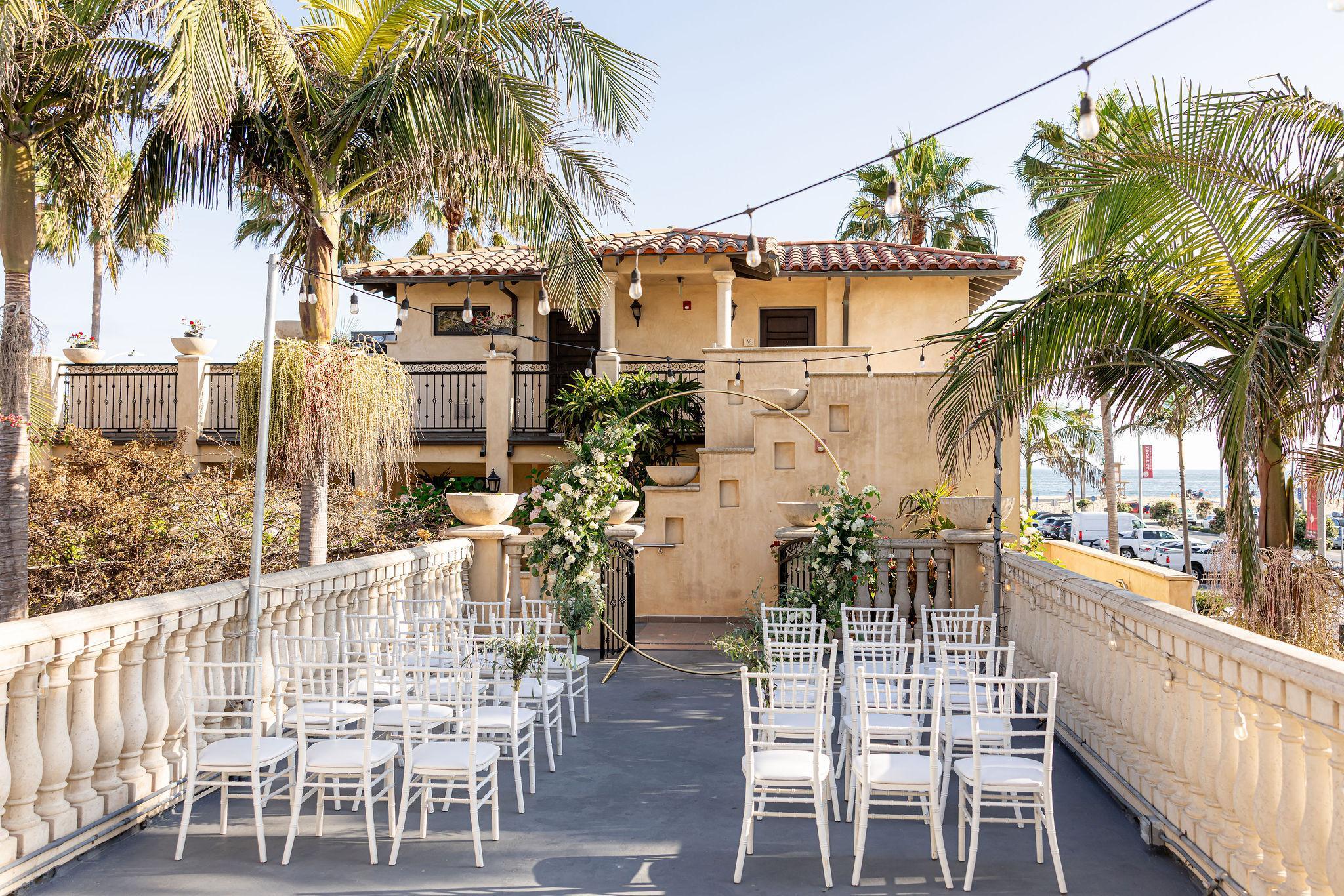 The Balboa Inn is a lavish oceanfront wedding venue based in sunny Newport Beach, CA. Established in 1929, the venue has not lost any of its authentic coastal aesthetic, with Mediterranean buildings and courtyards. The courtyard is an excellent area to welcome your guests. It features potted palm trees and original handcrafted tiling, set to the sound of the Pacific Ocean crashing onto Newport’s sandy shores. The Terrace has a guest capacity of 200, making this a wonderful environment for couples to have a meaningful ceremony or relaxing cocktail hour. With breathtaking panoramic views overlooking Catalina Island and all the way through to Dana Point, this event space is a picturesque backdrop for any occasion. The Matera Ballroom can host up to 150 of your nearest and dearest and provides a wonderful space to say your “I dos” in grand style. The Matera Dining Room and its adjacent courtyard create a warm environment to host your wedding reception as the sea breeze flows through.