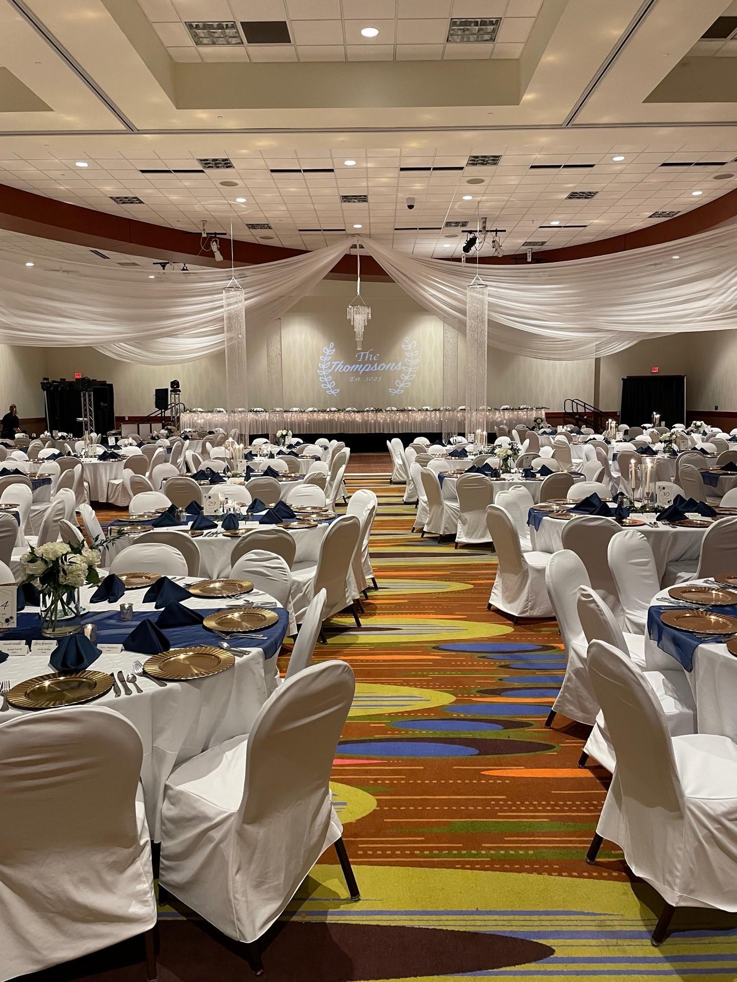 - Customizable layouts for head tables, dancefloor, bars, picture areas, etc. - Staff completes basic set up of tables, chairs, linens, silverware, glassware and bar set up - Full service staff for the entire event - In-house catering with complimentary tasting - Discount on hotel rooms - 2 LCD drop down screens & projectors