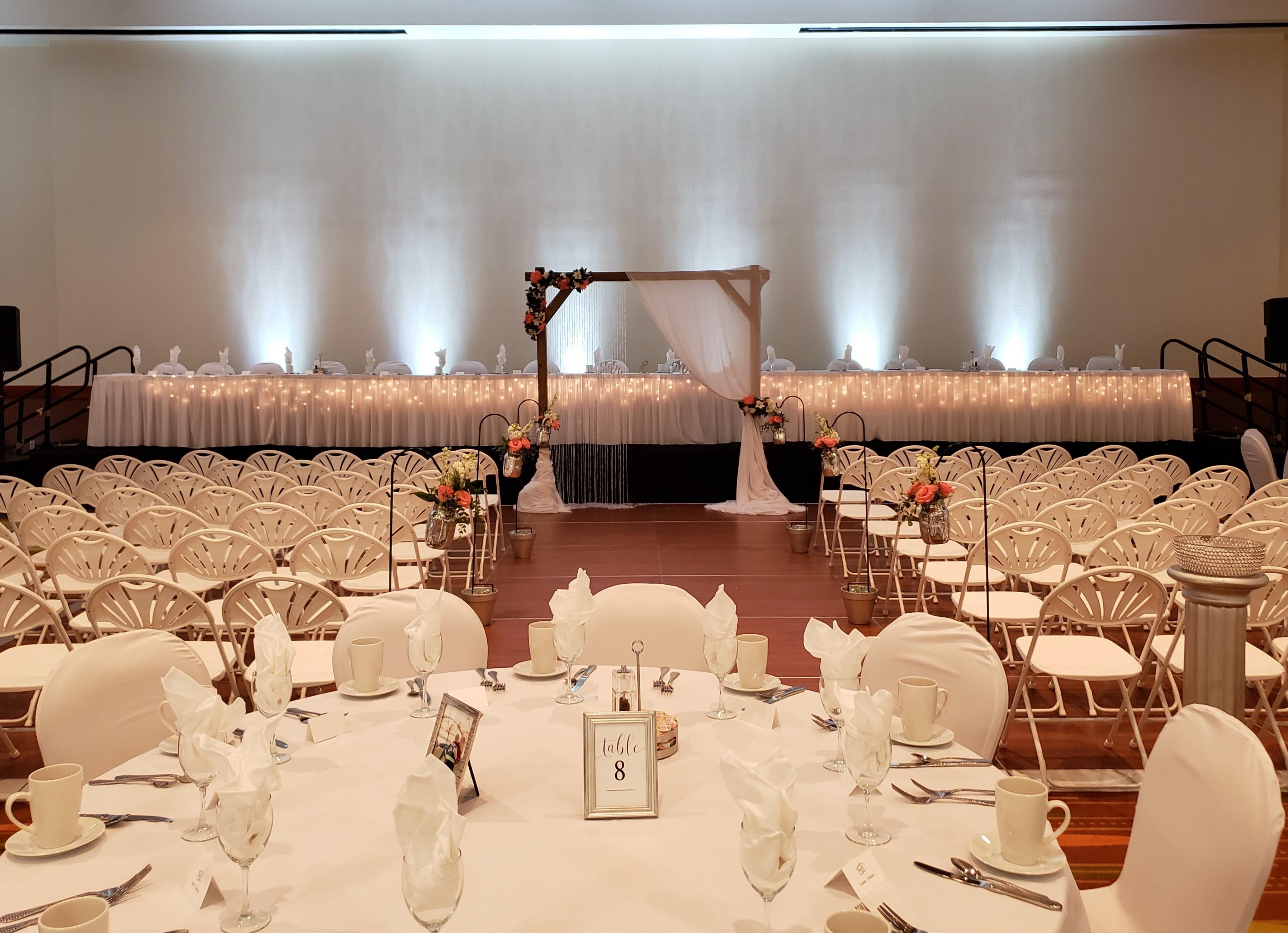 For delicate greenery and a lake view, our patio will bring all the charm. This is also a great space for an outdoor cocktail hour. If you’re planning a grand entrance onto the stage in front of all your friends and loved ones, we’ll plan a ceremony in our D. James Jumer Event Center. Our banquet staff is ready to adapt the space for your preferred design.