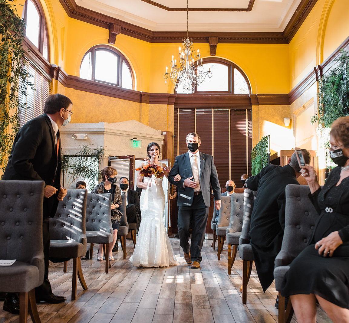 Experience the grandeur of soaring 30-foot ceilings and the warm ambiance of historic charm, perfectly tailored to host your unforgettable moments for up to 100 guests.